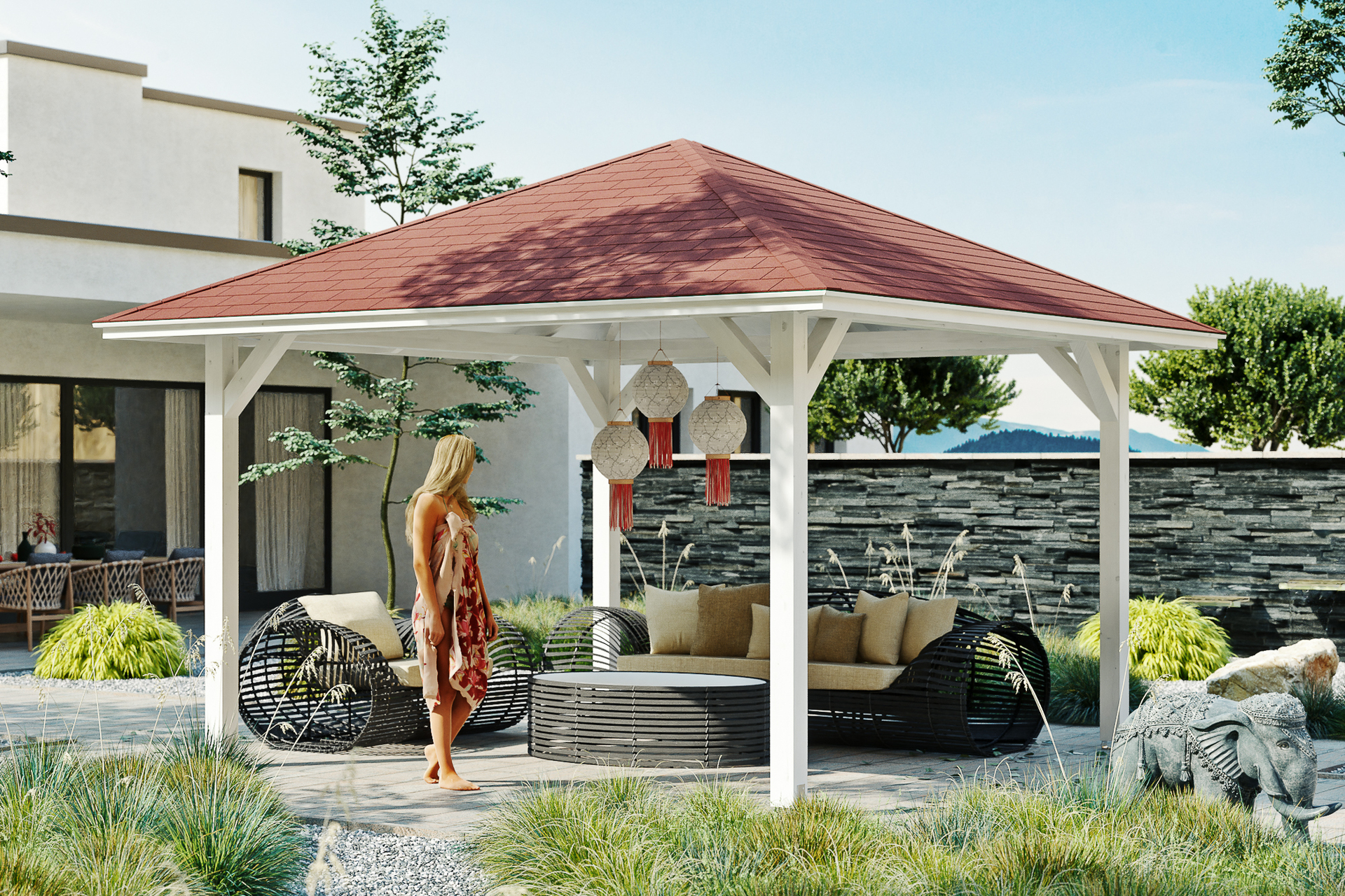 Wenn Sie eine zusätzliche Veredelung der Oberfläche wünschen, schleifen Sie nach der Montage die sichtbaren Oberflächen leicht an und streichen diese mit hochwertiger Lasur bzw. Farbe. Nutzen Sie dazu unser optionales Farb- bzw. Lasursortiment. Abgedruckte Farbmuster sind nicht verbindlich, farbliche Abweichungen können auftreten. Ablagespuren bei farblich allseitig behandelten Bauteilen sind technisch bedingt.