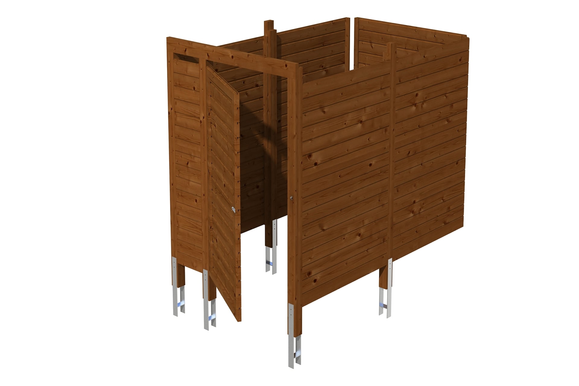 • Breite: 275 cm • Tiefe: 164 cm • Höhe: 200 cm • Tür (Durchgangsmaß 94 x 190 cm) • Stärke: 20 mm • Pfosten inklusive H-Pfostenanker • Rot markierte Pfosten sind carportseitig bereits vorhanden • bei Einbau unter einem Carport mit kleinerer Durchfahrtsbreite einfach bauseits anpassen • Material: Fichte • Farbbehandelt in Nussbaum