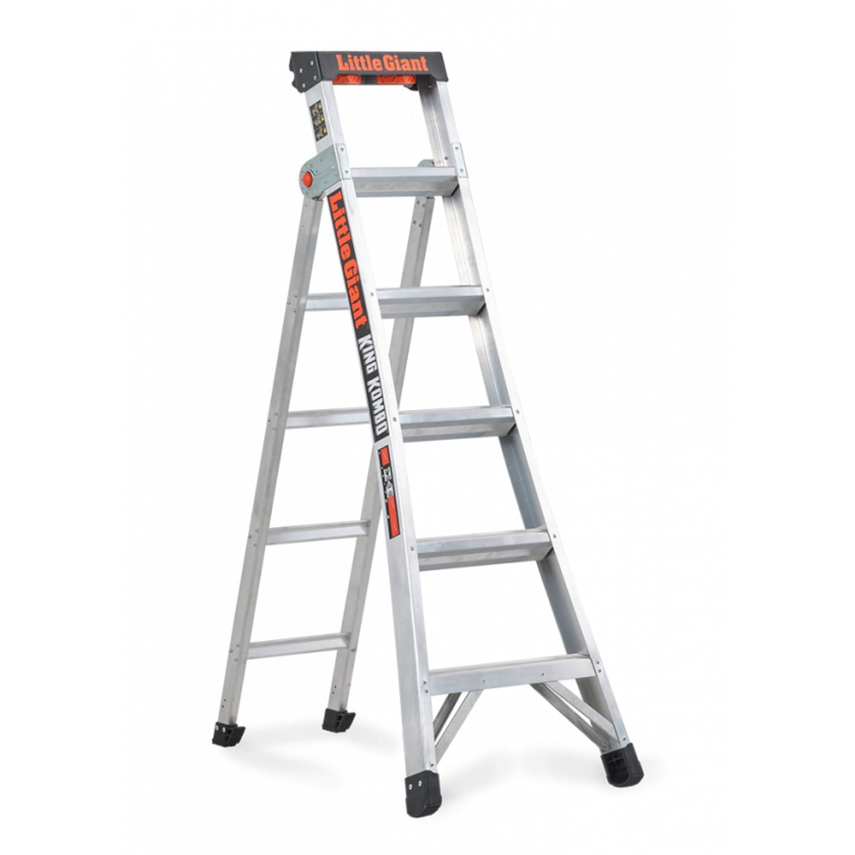Altrex King Kombo Stufenleiter – 3 in 1 MehrzweckleiterDie King Kombo ist die multifunktionellste Stufenstehleiter ihrer Art. Mit dieser einseitig begehbaren Stufenstehleiter ist Flexibilität garantiert, denn Sie können diese Stehleiter mit einer Handbewegung in bis zu drei verschiedene Positionen bringen. In der A-Position verwenden Sie dieses Kraftpaket auf traditionelle Weise als Stehleiter. Aber es ist auch bei eingeklapptem Stützteil möglich, sie auf einer Fläche angelegt, als Anlegeleiter zu verwenden. Auf diese Weise können Sie noch näher an die zu bearbeitende Stelle herankommen. Wenn Sie das Stützteil um 180° ausklappen, wird aus Ihrer Stehleiter eine (lange) Anlegeleiter. Das ist sehr praktisch, wenn Sie größere Höhen erreichen müssen.Die King Kombo Stufenstehleiter ist mit 5 (+3), 6 (+3) und 8 (+5) Stufen erhältlich. In diesem Fall steht das Plus-Symbol für die Anzahl der S…