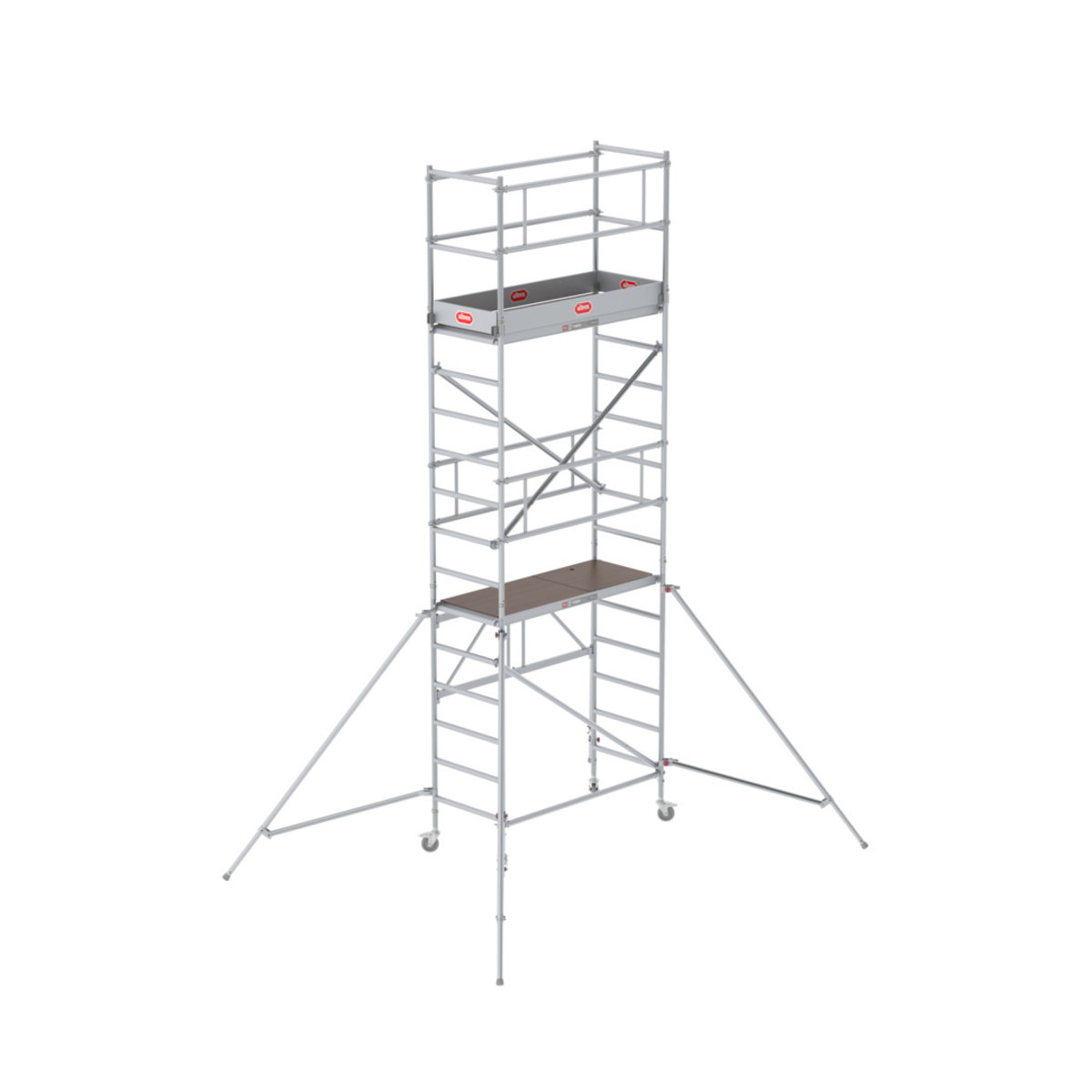 Altrex RS TOWER 34 Fahrgerüst schmal – Module 1+2+3 Arbeitshöhe bis 5,8m• Schmales Gerüst, passt durch Türrahmen• Modular, ausbaufähig bis Arbeitshöhe 7,80 m• Klappbar und kompakt Modulares und flexibles SystemBasis Modul(Arbeitshöhe 3,0 m), Mit Module 1 +2 (Arbeitshöhe 3,80 m),Module 1 + 2+ 3 (Arbeitshöhe 5,80 m), Module 1 + 2 + 3 + 3 (Arbeitshöhe 7,80 m) bauen Sie ein Gerüst mit der gewünschten Höhe.RS TOWER 34. Einklappbares Fahrgerüst für den intensiven Heimwerker oder ProfiDas RS TOWER 34 ist ein leichtes Fahrgerüst. Für den Innen- und Außenbereich geeignet. Dank seines kompakten Formats ideal für schmale Räume.Die schmalen Rahmen von 0,75 m nehmen kaum Platz in Anspruch. Die Plattform ist 1,65 m lang. den Rahmen in einem Stück zusammen. Dieses Gerüst ist sowohl für den intensiven Heimwerker konzipiert als auch für den professionellen Gebrauch zugelassen.Doppelte Geländ…