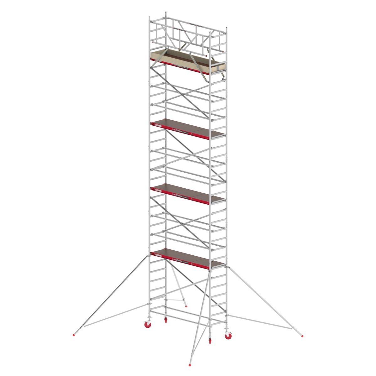 RS TOWER 41 Fahrgerüst schmal • Bis zu 10,2 m Arbeitshöhe• Für den Einsatz im Innen- und Außenbereich• Auch in Safe-Quick®-Ausführung erhältlich• Fahrgerüst schmal, für schmale Räume Konform der neuen TRBS 2121-1RS TOWER 41 Fahrgerüst schmal. Fahrgerüst für alle professionellen Arbeiten im HausDas RS TOWER 41 ist ein komplettes Fahrgerüst. Perfekt für jeden Profi. Gepresste Verbindungen zwischen Klaue und Strebenrohr machen das RS TOWER 41 so stark. Mit diesem Gerüst können Sie bis zu einer Arbeitshöhe von maximal 10,20 arbeiten. Sowohl im Innen- als auch Außenbereich. Rundum geschweißte rutschsicheren Sprossen und machen den Rahmen außerdem sehr robust und 100%ig zuverlässig. Mit den schmalen Aufbaurahmen von 0,75 Metern und einer Belastbarkeit bis zu 250 kg pro Plattform eignet dieses Gerüst sich für die Arbeit in schmalen Räumen. Mit der optionalen Safe-Quick® GuardRa…