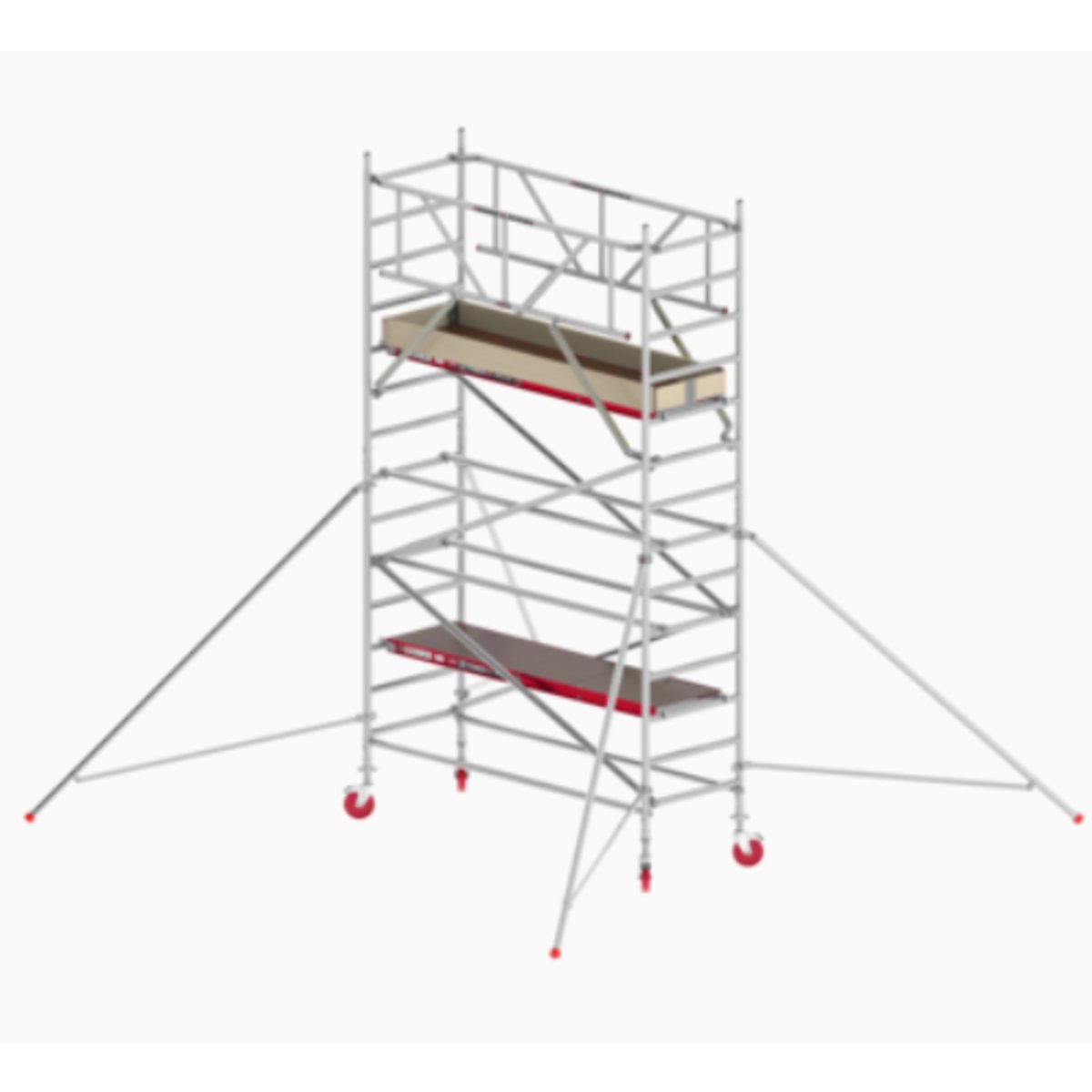 RS TOWER 41 Fahrgerüst PLUS  0,90m x 1,85m • Bis zu 10,2 m Arbeitshöhe• Für den Einsatz im Innen- und Außenbereich• Auch in Safe-Quick®-Ausführung erhältlichDie Holzplattform ist in den folgenden Längen erhältlich: 1,85 m oder 2,4 m. Immer sicher mit Safe-Quick®Mit der Innovation Safe-Quick® GuardRail montieren Sie schon vor dem Betreten der Plattform ein verbleibendes Geländer. Dann sind Sie rundherum auf jedem Niveau geschützt. Starke VerbindungenGepresste Verbindungen zwischen Klaue und Strebenrohr machen das RS TOWER 41 so stark. Die Verbindungen sind nicht geschweißt und sind sehr strapazierfähig. Holzplattformen und BordbretterDas System wird mit Holzplattformen und Bordbrettern geliefert. Vertraut und solide. Doppelstopp-LenkrollenMit den Doppelstopp-Lenkrollen steht Ihr Fahrgerüst sicher und stabil an einer Stelle. Bis 18 cm höhenverstellbar (spindelbar).Lieferum…