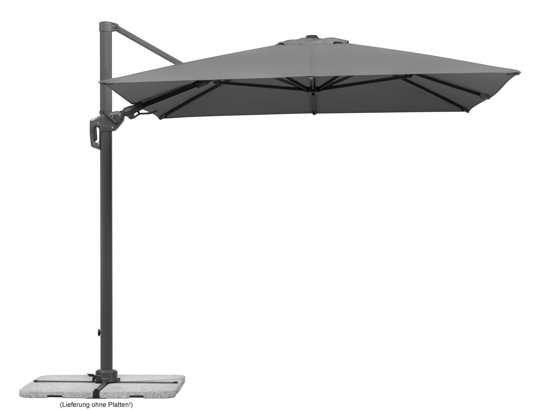 Dieser Sonnenschirm ist ein rechteckiger Ampelschirm in der Größe 350 x 260 cm.
