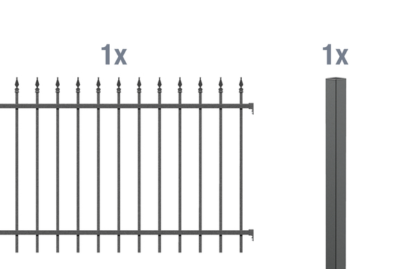 1 Zaunfeld Chaussee, Aluminium, anthrazit, 2000×1200, 1 Zaunpfosten Chaussee, Circle, Aluminium, anthrazit, zum Einbetonieren51x51/1700