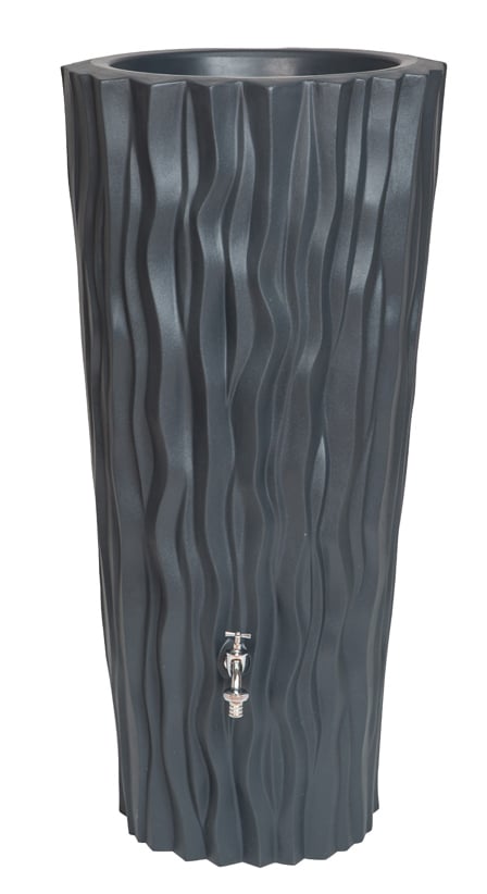 ARVES Regentonne “Alana” 160l Die Regentonne „Alana“ besticht durch ihre moderne schlichte Form mit einzigartiger Oberflächenstruktur. Sie verfügt über eine fest integrierte Pflanzkammer, die eine individuelle Bepflanzung ermöglicht. „Alana“ hat ein Fassungsvolumen von max. 160 Litern und verfügt über einen ¾“-Anschluss an der Vorderseite, in den ein Wasserhahn eingeschraubt werden kann. Inklusive einer seitlichen Auslauföffnung zur vollständigen Entleerung der Regentonne vor der Frostperiode oder für das Verbinden von zwei Tonnen. Die Regentonne „Alana“ besteht aus witterungs- und UV-beständigem PE-Kunststoff. – Farbe: anthrazit, – Gewicht: 11, – Höhe: 116, – Material: Polyethylen, – Produktart: Regentonne