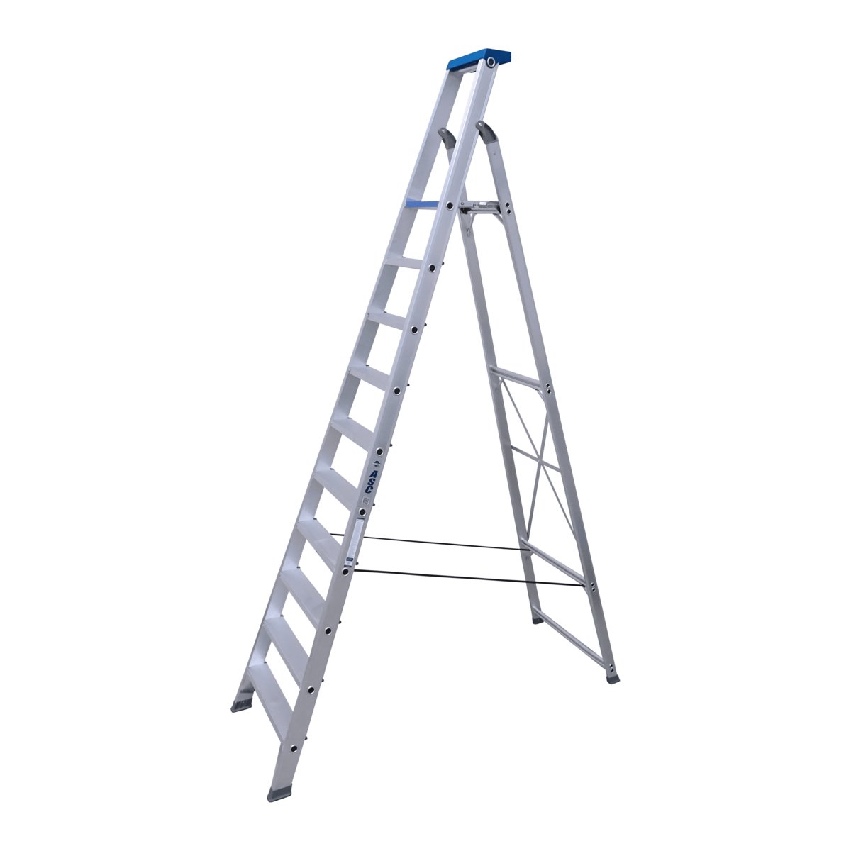 Unsere Leitern wurden durch innovative Lösungen weiterentwickelt.Alle Stufen unserer Leitern und Tritte sind im Holm eingezapft verschweißt, sowie durch ein noch stärkeres Profil verbessert worden. Darüber hinaus verfügt jede Stufe über ein innen liegendes Tragrohr unter der Trittfläche, welches die Stabilität und Festigkeit der Leitern wesentlich erhöht. Alle ASC Leitern wurden mit einem eigens entwickelten, neuen Verriegelungssystem ausgestattet. Alle ASC Stufenstehleitern entsprechend DIN EN 131.1-6.EINSEITIGE LEITERN:Unsere Stehleitern sind gekennzeichnet durch:- Ein festes Verriegelungssystem an der oberen Plattform- hochwertige, robuste Scharniere- komplett mit Werkzeugablage- extra breite Stufen für mehr Sicherheit und Komfort- hergestellt aus hochwertigem eloxiertem Aluminium; kein AbfärbenASC gibt eine Garantie von 5 Jahren auf alle Schweißnähte. Alle Kunststoffteile sind von…