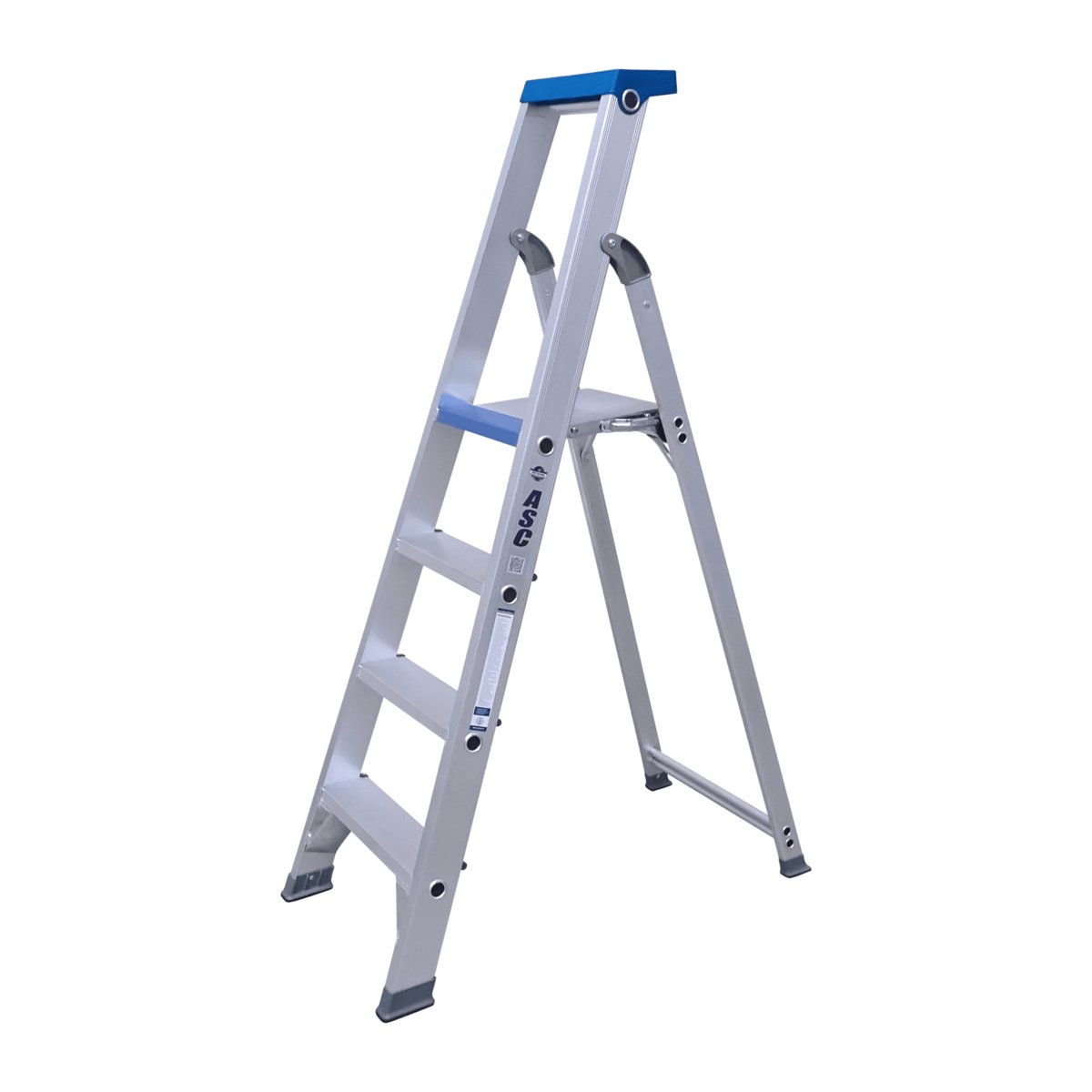Unsere Leitern wurden durch innovative Lösungen weiterentwickelt.Alle Stufen unserer Leitern und Tritte sind im Holm eingezapft verschweißt, sowie durch ein noch stärkeres Profil verbessert worden. Darüber hinaus verfügt jede Stufe über ein innen liegendes Tragrohr unter der Trittfläche, welches die Stabilität und Festigkeit der Leitern wesentlich erhöht. Alle ASC Leitern wurden mit einem eigens entwickelten, neuen Verriegelungssystem ausgestattet. Alle ASC Stufenstehleitern entsprechend DIN EN 131.1-6.EINSEITIGE LEITERN:Unsere Stehleitern sind gekennzeichnet durch:- Ein festes Verriegelungssystem an der oberen Plattform- hochwertige, robuste Scharniere- komplett mit Werkzeugablage- extra breite Stufen für mehr Sicherheit und Komfort- hergestellt aus hochwertigem eloxiertem Aluminium; kein AbfärbenASC gibt eine Garantie von 5 Jahren auf alle Schweißnähte. Alle Kunststoffteile sind von…