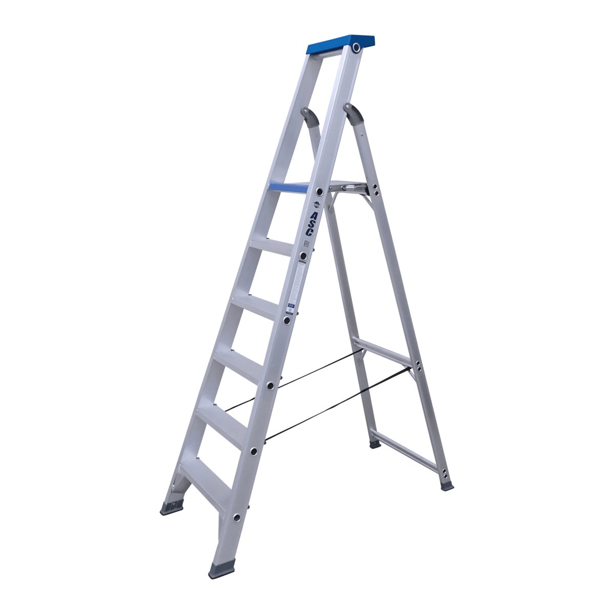 Unsere Leitern wurden durch innovative Lösungen weiterentwickelt.Alle Stufen unserer Leitern und Tritte sind im Holm eingezapft verschweißt, sowie durch ein noch stärkeres Profil verbessert worden. Darüber hinaus verfügt jede Stufe über ein innen liegendes Tragrohr unter der Trittfläche, welches die Stabilität und Festigkeit der Leitern wesentlich erhöht. Alle ASC Leitern wurden mit einem eigens entwickelten, neuen Verriegelungssystem ausgestattet. Alle ASC Stufenstehleitern entsprechend DIN EN 131.1-6.EINSEITIGE LEITERN:Unsere Stehleitern sind gekennzeichnet durch:- Ein festes Verriegelungssystem an der oberen Plattform- hochwertige, robuste Scharniere- komplett mit Werkzeugablage- extra breite Stufen für mehr Sicherheit und Komfort- hergestellt aus hochwertigem eloxiertem Aluminium; kein AbfärbenASC gibt eine Garantie von 5 Jahren auf alle Schweißnähte. Alle Kunststoffteile sind von…