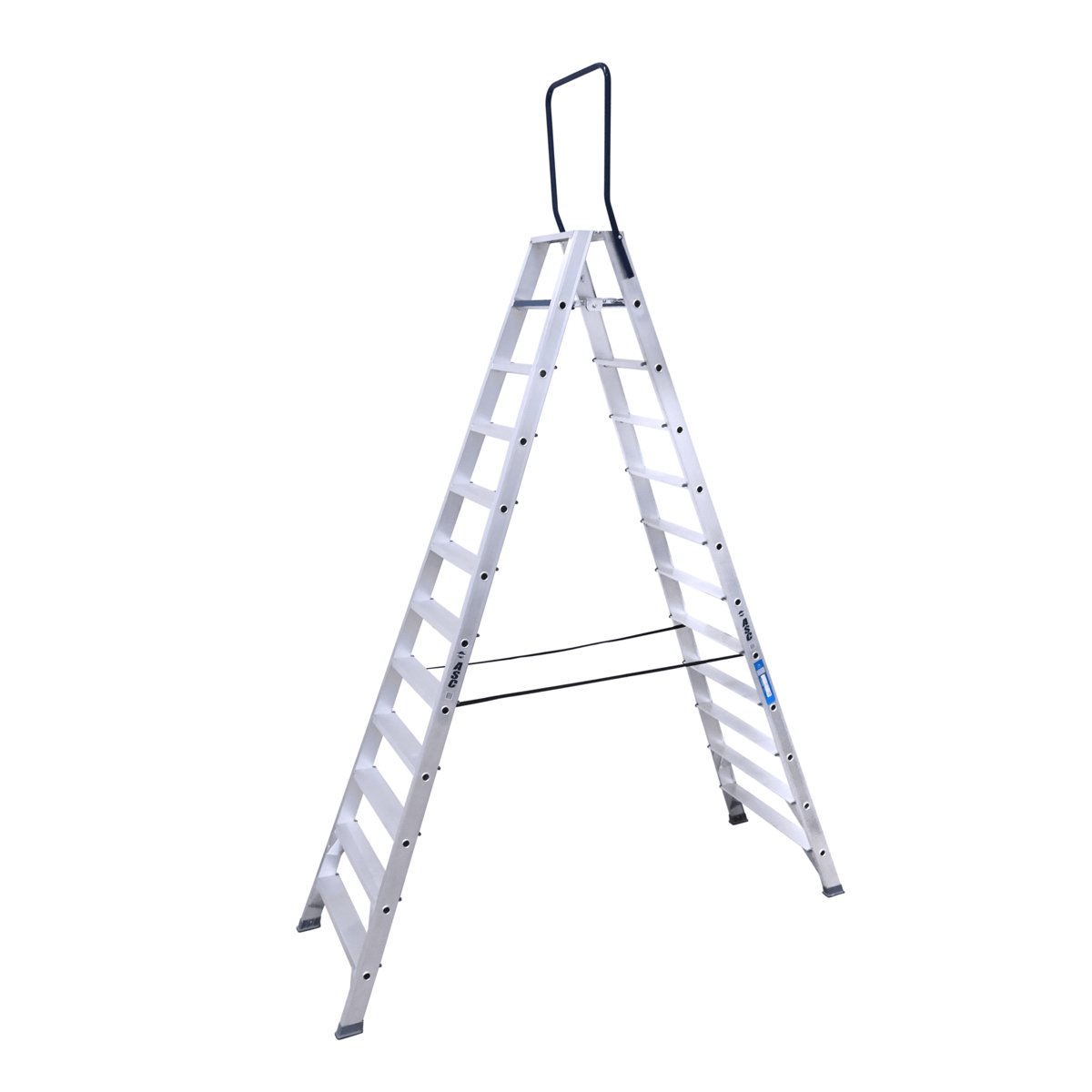 Unsere Leitern wurden durch innovative Lösungen weiterentwickelt.Alle Stufen unserer Leitern und Tritte sind im Holm eingezapft verschweißt, sowie durch ein noch stärkeres Profil verbessert worden. Darüber hinaus verfügt jede Stufe über ein innen liegendes Tragrohr unter der Trittfläche, welches die Stabilität und Festigkeit der Leitern wesentlich erhöht. Alle ASC Leitern wurden mit einem eigens entwickelten, neuen Verriegelungssystem ausgestattet. Alle ASC Stufenstehleitern entsprechend DIN EN 131.1-6.DOPPELTRITTE:Unsere Doppeltritte sind gekennzeichnet durch:- Eine zusätzliche Verriegelung, die eine optimale Stabilität der Leitern gewährleistet; kein Klemmen oder ungewolltes Zusammenklappen- hochwertige, rutschfeste Füße für maximale Sicherheit- hergestellt aus hochwertigem eloxiertem Aluminium; kein AbfärbenASC gibt eine Garantie von 5 Jahren auf alle Schweißnähte. Alle Kunststoff…