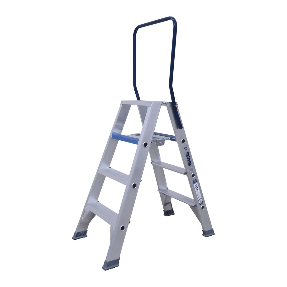 Unsere Leitern wurden durch innovative Lösungen weiterentwickelt.Alle Stufen unserer Leitern und Tritte sind im Holm eingezapft verschweißt, sowie durch ein noch stärkeres Profil verbessert worden. Darüber hinaus verfügt jede Stufe über ein innen liegendes Tragrohr unter der Trittfläche, welches die Stabilität und Festigkeit der Leitern wesentlich erhöht. Alle ASC Leitern wurden mit einem eigens entwickelten, neuen Verriegelungssystem ausgestattet. Alle ASC Stufenstehleitern entsprechend DIN EN 131.1-6.DOPPELTRITTE:Unsere Doppeltritte sind gekennzeichnet durch:- Eine zusätzliche Verriegelung, die eine optimale Stabilität der Leitern gewährleistet; kein Klemmen oder ungewolltes Zusammenklappen- hochwertige, rutschfeste Füße für maximale Sicherheit- hergestellt aus hochwertigem eloxiertem Aluminium; kein AbfärbenASC gibt eine Garantie von 5 Jahren auf alle Schweißnähte. Alle Kunststoff…