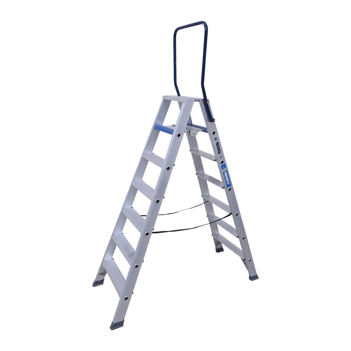 Alle Stufen unserer Leitern und Tritte sind im Holm eingezapft verschweißt, sowie durch ein noch stärkeres Profilverbessert worden. Darüber hinaus verfügt jede Stufe über ein innen liegendes Tragrohr unter der Trittfläche,welches die Stabilität und Festigkeit der Leitern wesentlich erhöht. Alle ASC Leitern wurden mit einem eigensentwickelten, neuen Verriegelungssystem ausgestattet. Alle ASC Stufenstehleitern entsprechend DIN EN 131.1-6.DOPPELTRITTE:Unsere Doppeltritte sind gekennzeichnet durch:- Eine zusätzliche Verriegelung, die eine optimale Stabilität der Leitern gewährleistet; kein Klemmen oder ungewolltes Zusammenklappen- hochwertige, rutschfeste Füße für maximale Sicherheit- hergestellt aus hochwertigem eloxiertem Aluminium; kein AbfärbenASC gibt eine Garantie von 5 Jahren auf alle Schweißnähte. Alle Kunststoffteile sind von hoher Qualität und haben eine lange Lebensdauer.