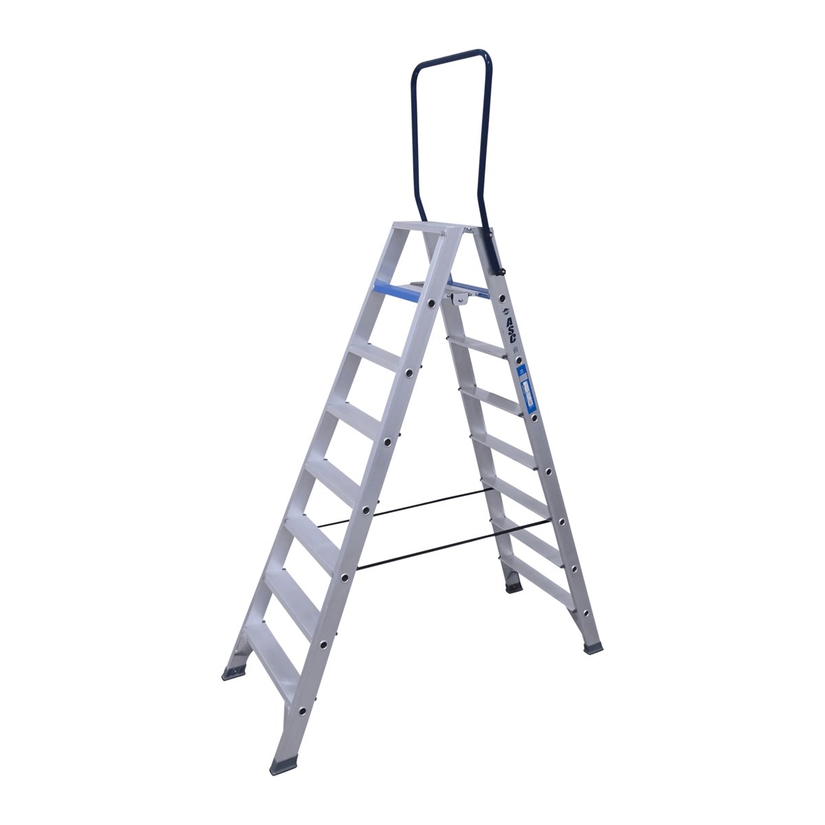 Unsere Leitern wurden durch innovative Lösungen weiterentwickelt.Alle Stufen unserer Leitern und Tritte sind im Holm eingezapft verschweißt, sowie durch ein noch stärkeres Profil verbessert worden. Darüber hinaus verfügt jede Stufe über ein innen liegendes Tragrohr unter der Trittfläche, welches die Stabilität und Festigkeit der Leitern wesentlich erhöht. Alle ASC Leitern wurden mit einem eigens entwickelten, neuen Verriegelungssystem ausgestattet. Alle ASC Stufenstehleitern entsprechend DIN EN 131.1-6.DOPPELTRITTE:Unsere Doppeltritte sind gekennzeichnet durch:- Eine zusätzliche Verriegelung, die eine optimale Stabilität der Leitern gewährleistet; kein Klemmen oder ungewolltes Zusammenklappen- hochwertige, rutschfeste Füße für maximale Sicherheit- hergestellt aus hochwertigem eloxiertem Aluminium; kein AbfärbenASC gibt eine Garantie von 5 Jahren auf alle Schweißnähte. Alle Kunststoff…
