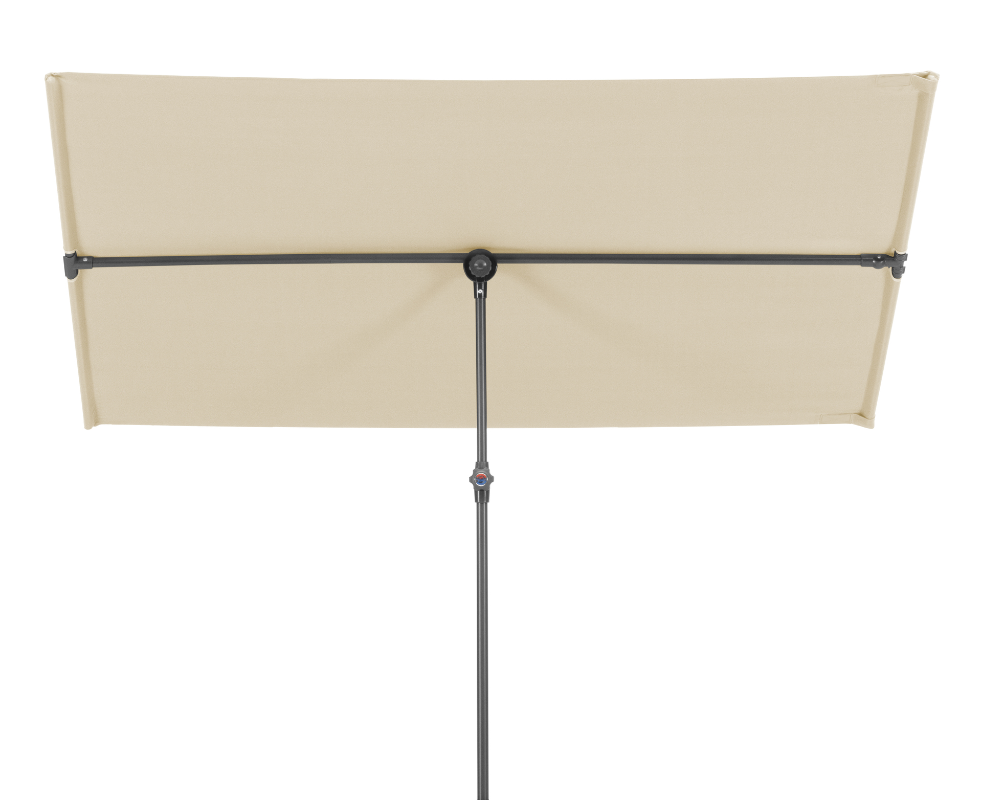 Das Stahl-Gestell ist anthrazitgrau pulverbeschichtet. Der zweiteilige Stock mit einem Durchmesser von ca. 22/25 mm (Ober-/Unterstock) lässt sich einfach demontieren und ermöglicht es, den Balkonschirm über die Wintermonate platzsparend zu verstauen.