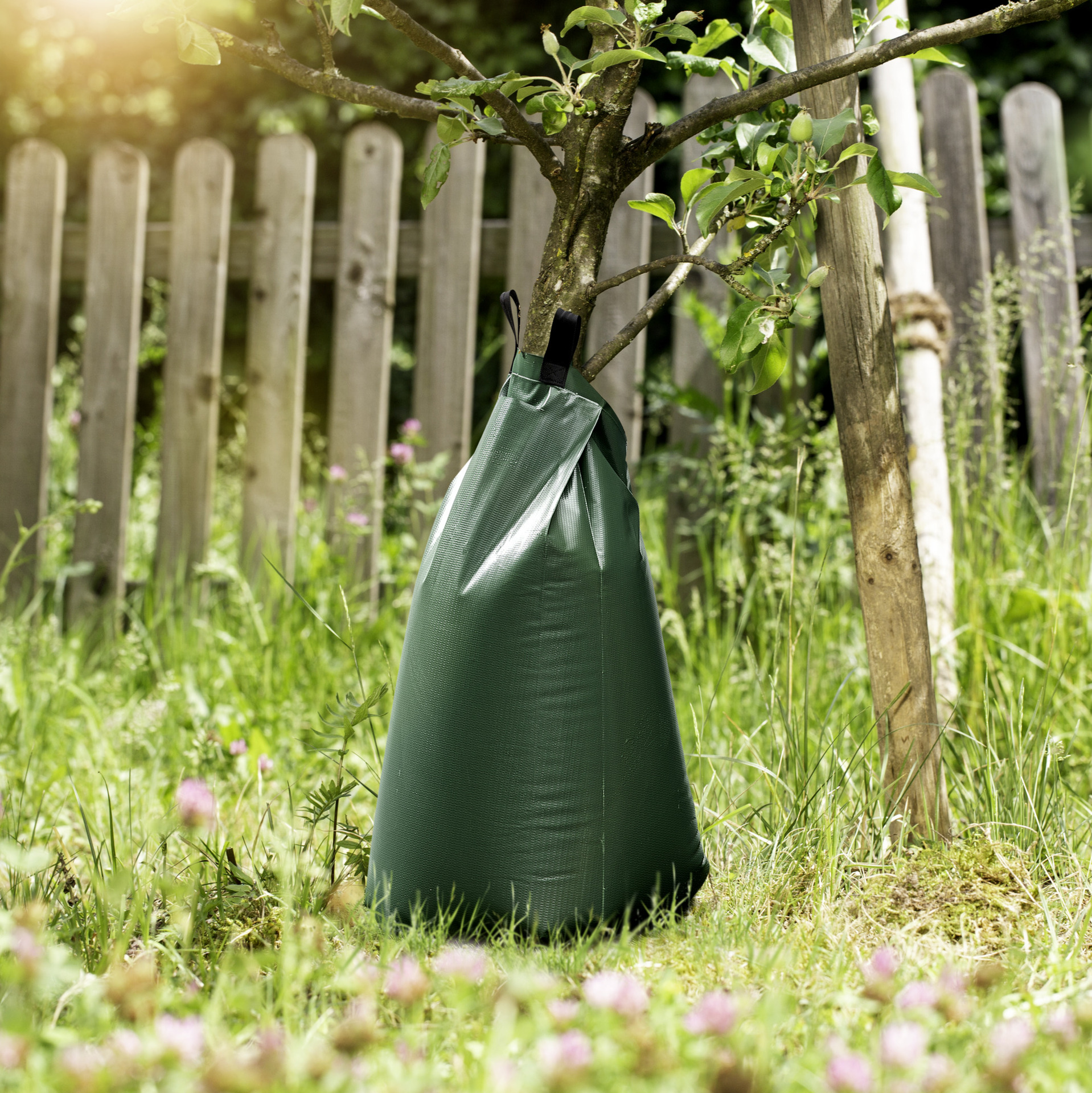 Dank der langsamen Bewässerung kann der Boden das Wasser über längere Zeit speichern – dadurch muss weniger häufig gegossen werden. Auch die Anwendung ist denkbar einfach: der Bewässerungsbeutel wird um den Stamm gelegt, mit dem Reißverschluss verschlossen und anschließend über die Füllöffnung mit Wasser befüllt. Sollte ein erweitertes Füllvolumen benötigt werden oder der Baumstamm einen größeren Durchmesser haben, lassen sich die Beutel dank des Reißverschlusses miteinander verbinden. Der besondere Clou: der Baum kann so nicht nur mit Wasser, sondern auch mit Flüssignährstoffen optimal versorgt werden.