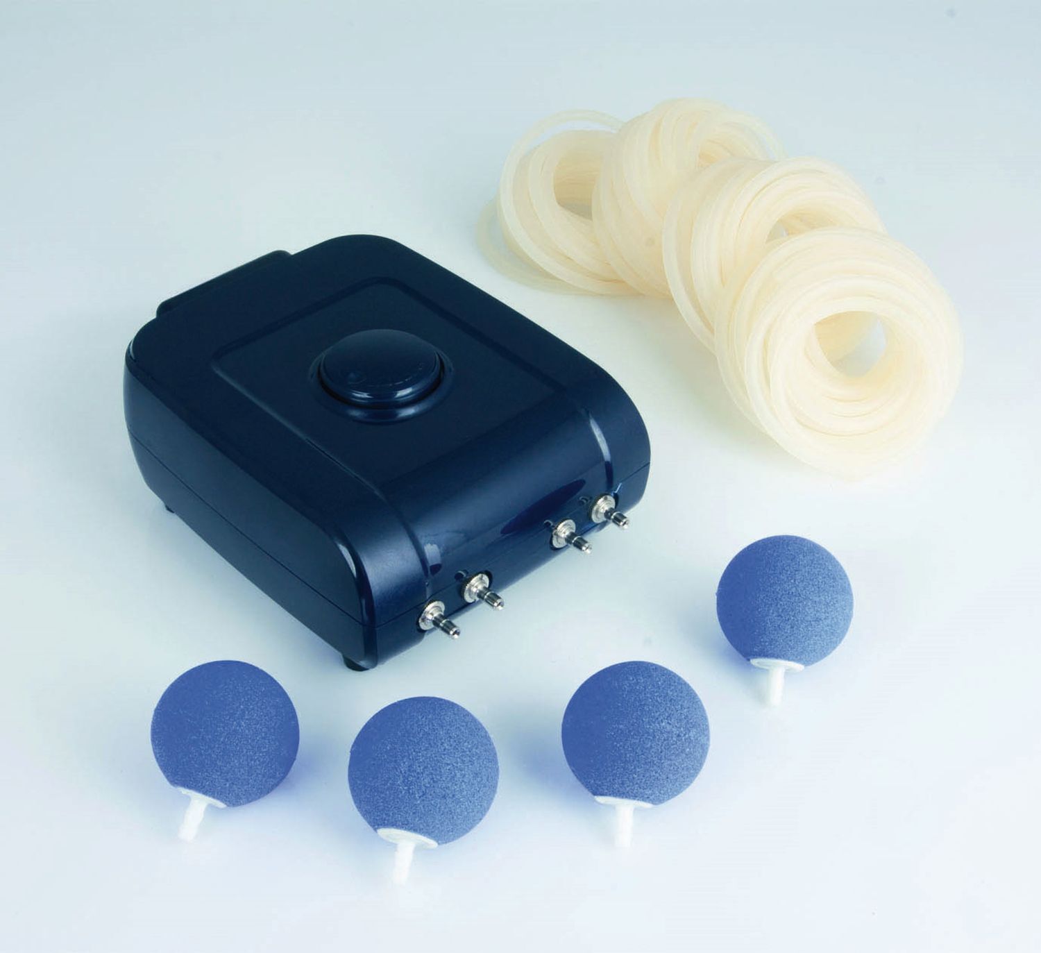 Belüftungspumpe Eine ausreichende Sauerstoffversorgung ist entscheidend für die Gesundheit von Pflanzen und Tieren in einem Teich. Insbesondere in warmen Monaten kann der Sauerstoffgehalt schnell abnehmen und zu einem kritischen Zustand führen. Die Belüftungspumpen der Air-Serie sind eine effektive Möglichkeit, den Teich mit Sauerstoff zu versorgen. Die Pumpen sind in verschiedenen Größen und für den Innen- und Außenbereich erhältlich. Wobei Indoor und Outdoor lediglich heißt, dass die Indoor Pumpen geschützt aufgestellt werden sollten, z. B. in einem Gartenhaus, und die Outdoor- Pumpen direkt neben den Teich gesetzt werden können und wetterfest sind. Die Technik basiert auf Membranen und die Luft wird über einen oder mehrere Luftströmersteine ins Wasser abgegeben.