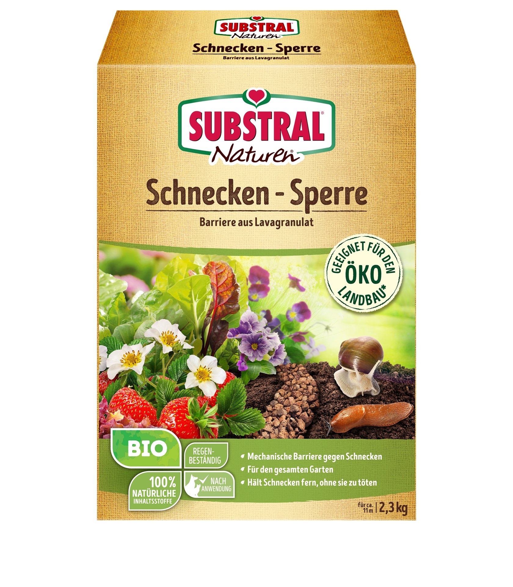 Das Lavagranulat ist ein Naturmaterial aus speziellem Vulkangestein, welches aufgrund seiner Oberflächenbeschaffenheit eine mechanische Barriere gegen Schnecken bildet. Für die Schnecken ist dieses Material besonders unangenehm und sie vermeiden eine Überquerung. Es kann im gesamten Garten eingesetzt werden: sowohl in Beeten, als auch in Töpfen, Hochbeeten oder auf anderen Flächen, wo Schnecken keinen Zugang bekommen sollen. Wenn ein dekorativer Effekt gewünscht ist, kann das Granulat statt linienförmig auch flächig ausgebracht werden. Bei der Ausbringung auf versteckte Schnecken innerhalb des abzugrenzenden Bereichs achten (z. B. unter oder innerhalb der Pflanzen oder unter Brettern oder Steinen)! Inhaltsstoffe: Pouzzolan (Lavagranulat) Gebrauchsanleitung Das Lavagranulat rund um die Pflanzen (Zier- und Kulturpflanzen) oder Beetflächen zu einem kleinen Wall aufschütten (4-5 cm breit und 3-5 cm hoch). Zu einzelnen Pflanzen mindestens einen Abstand von 2-3 cm halten. Die Schnecken-Sperre kann auch flächig um die Pflanzen ausgebracht werden. In diesem Fall die Erde vollständig mit dem Granulat bedecken. Um die Barrierewirkung aufrecht zu erhalten, muss der Wall oder die Fläche lückenlos geschlossen bleiben. Sollten Lücken entstehen oder die Steine sich lose verteilen, bitte an diesen Stellen neu aufschütten. Tipps zur AnwendungIn der Schneckensaison von Frühjahr bis Herbst anwenden sobald erste Schäden bzw. Schnecken an den Pflanzen sichtbar sind. Als Schutzwall um einzelne Zierpflanzen-, Gemüse- oder Obstpflanzen ausbringen. Größere Flächen, z. B. Zierpflanzen-, Gemüse- oder Obstbeete, gezielt umranden. In Töpfen und Gefäßen ausstreuen. In Hoch- und Frühbeeten ausstreuen. Als dekorative Abdeckung mit Zusatzeffekt ausstreuen. zusätzliche Hinweise Bitte beachten Sie die Warnhinweise und Sicherheitsratschläge in der Gebrauchsanleitung. – Gewicht: 2399, – Name Hersteller: Evergreen Garden Care, – Name lt. Zulassung: Bio Schnecken-Sperre, – Produktart: Biotechnische Fallen, – Wirkstoff: Pouzzolan (Lavagranulat), – Zulassungsnummer: – 2,3kg