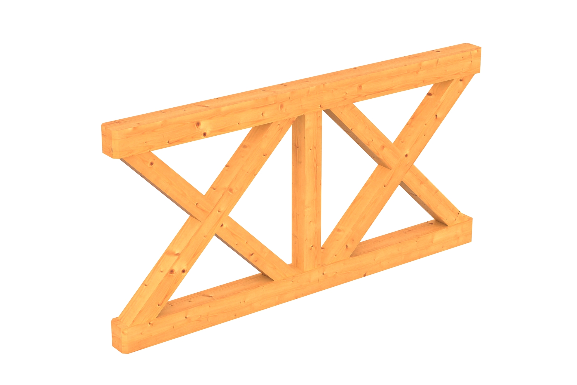 Brüstung Andreaskreuz Die dekorative SKAN HOLZ Brüstung mit massiven Andreaskreuzen Douglasie eignet sich für SKAN HOLZ Terrassenüberdachungen aus Douglasie mit einem Pfostenabstand von 170 cm.