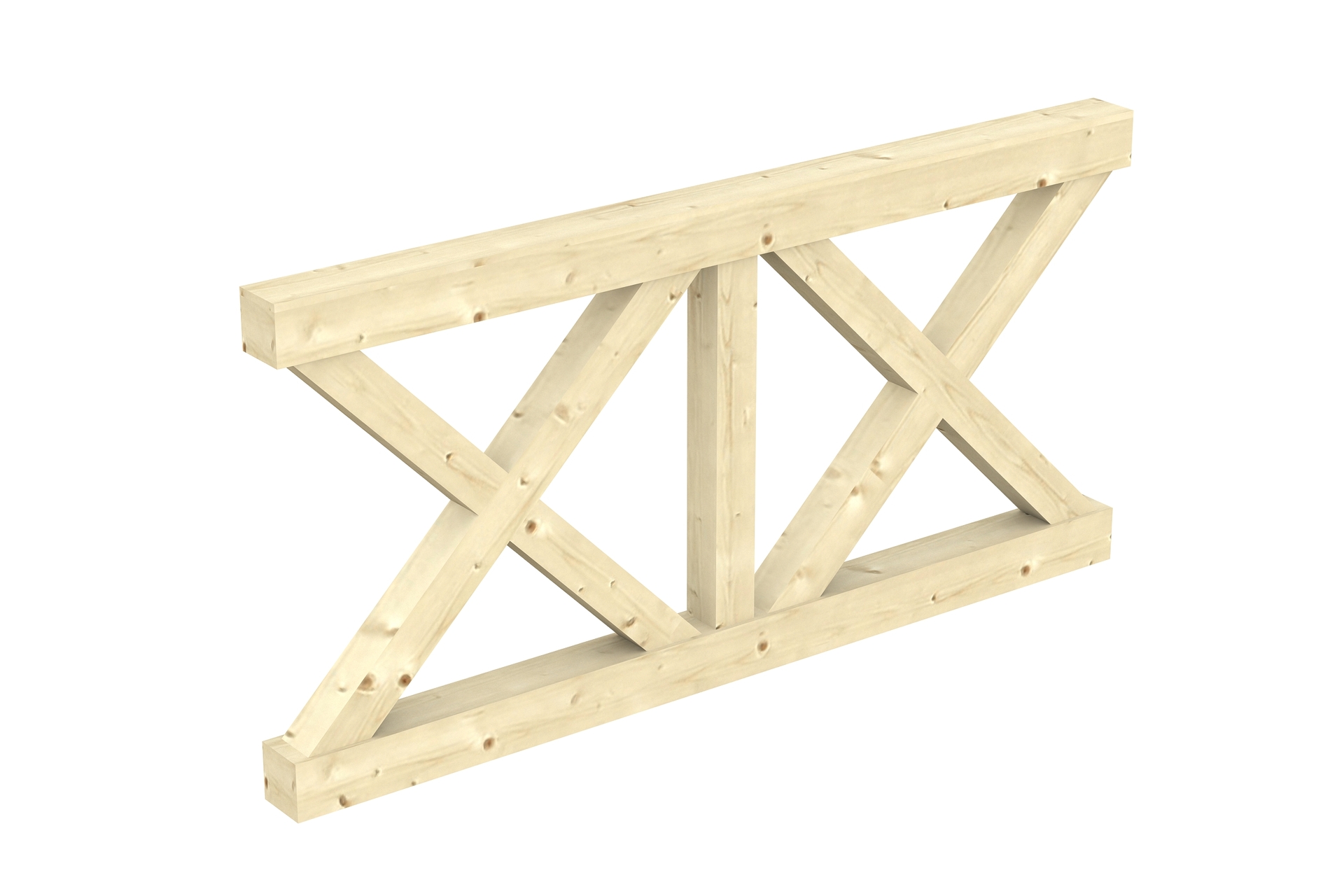• Breite: 170 cm • Höhe: 84 cm (+ Abstand zum Boden) • Stärke Querbalken: 10 x 10 cm • Stärke Andreaskreuz: 8 x 8 cm • Material: Fichte • Farblich unbehandelt