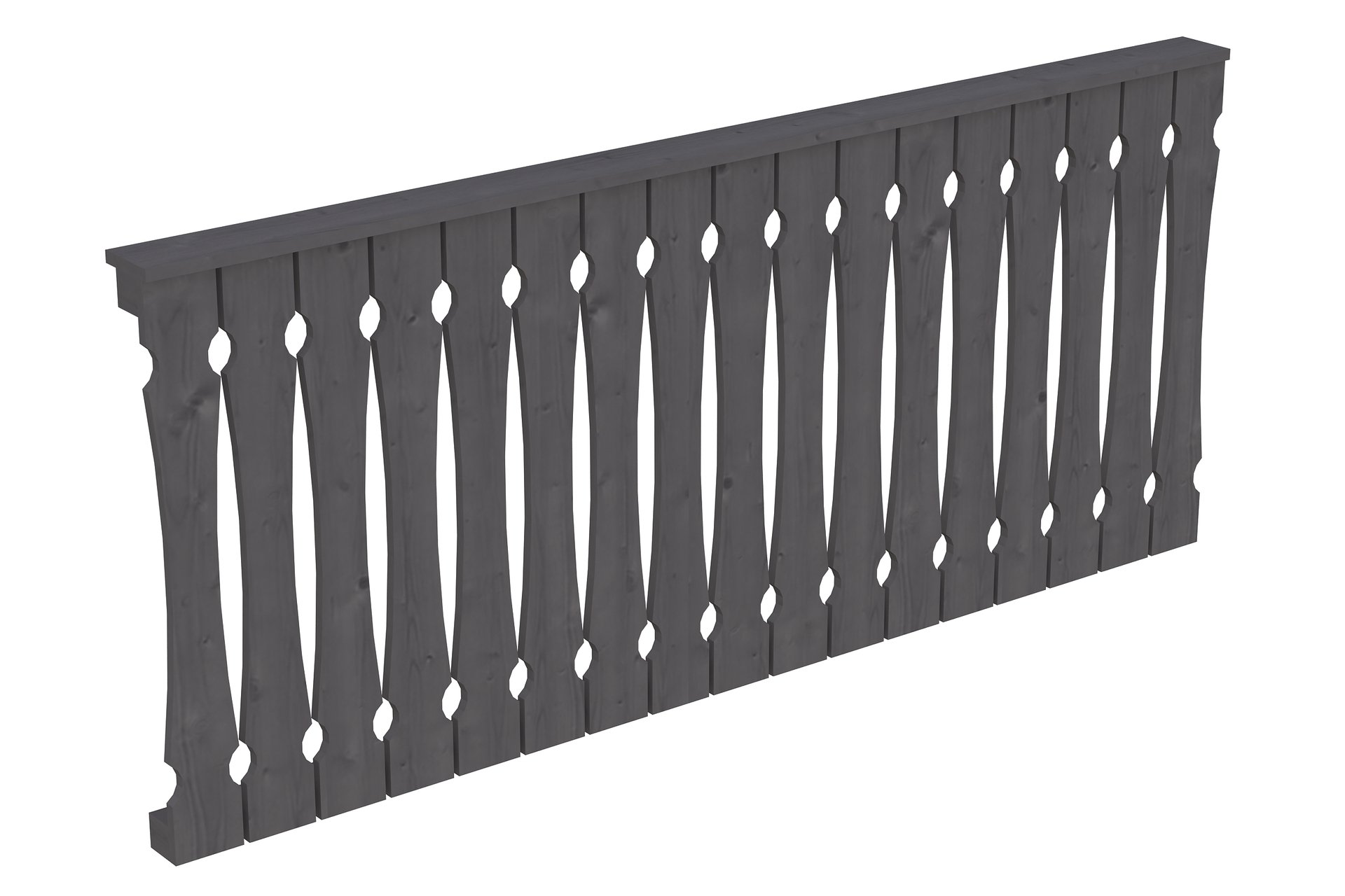 Die dekorative SKAN HOLZ Brüstung aus Balkonschalung eignet sich für SKAN HOLZ Terrassenüberdachungen aus Leimholz mit einem Pfostenabstand von 220 cm.