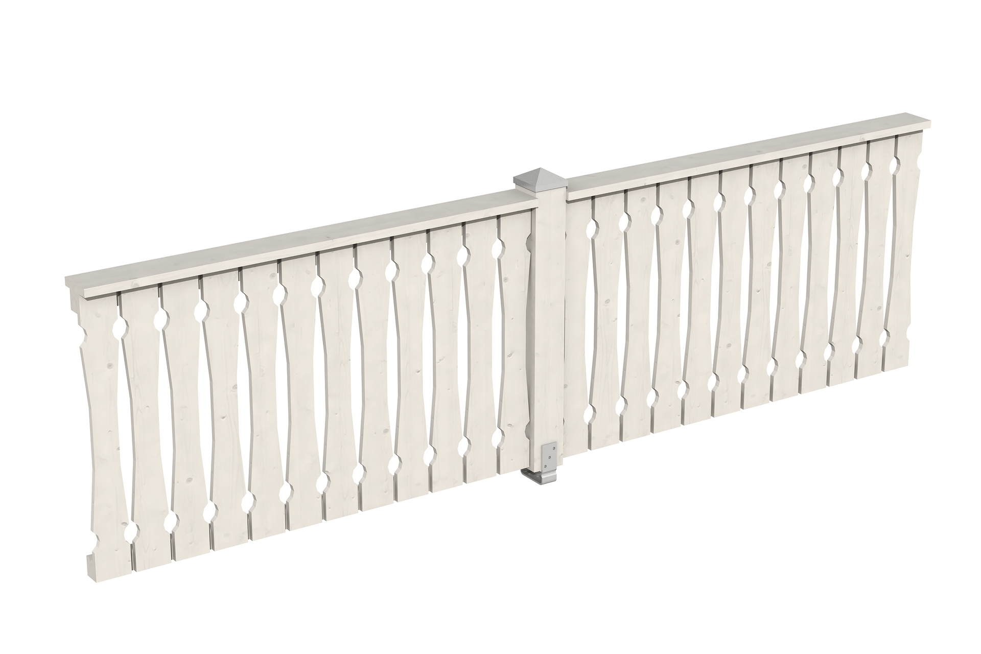 Die dekorative SKAN HOLZ Brüstung aus Balkonschalung eignet sich für SKAN HOLZ Terrassenüberdachungen und Pavillons aus Leimholz mit einem Pfostenabstand von 335 cm.