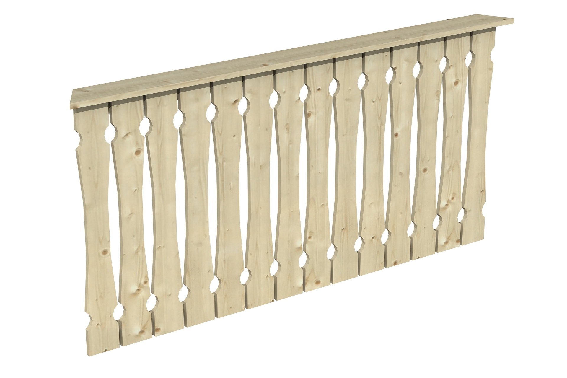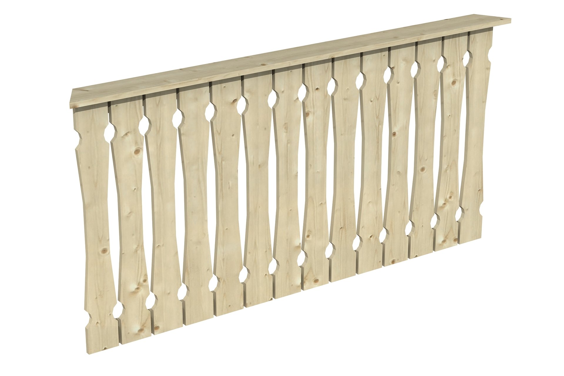 • Breite: 180 cm • Höhe: 96 cm • Stärke Querriegel: 6 x 6 cm • Stärke Balkonbrett: 1,9 x 12 cm • Material: Nordische Fichte • Farblich unbehandelt
