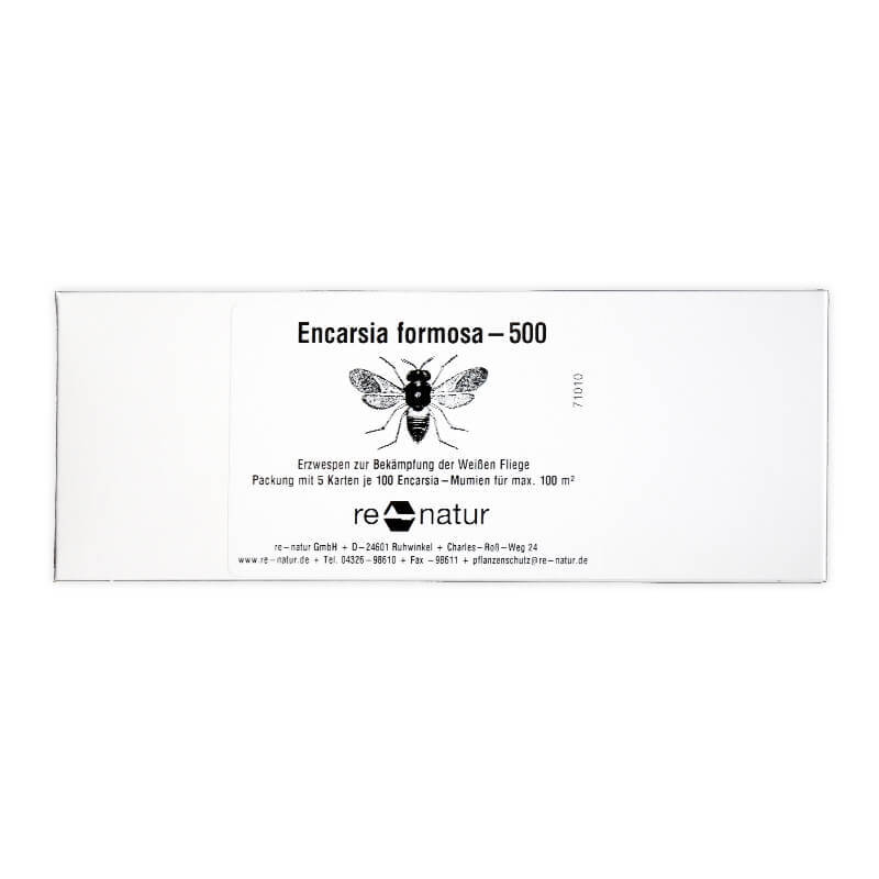 Lagerung – Die Nützlinge werden in Puppenform als parasitierte Larven der Weißen Fliege (Mumien) geliefert. Aus ihnen schlüpfen im Abstand einiger Tage die erwachsenen Schlupfwespen. Eine Lagerung ist nur für max. 1 – 2 Tage bei 8 – 12 °C möglich. – Produktart: Nützlinge 5 Karten