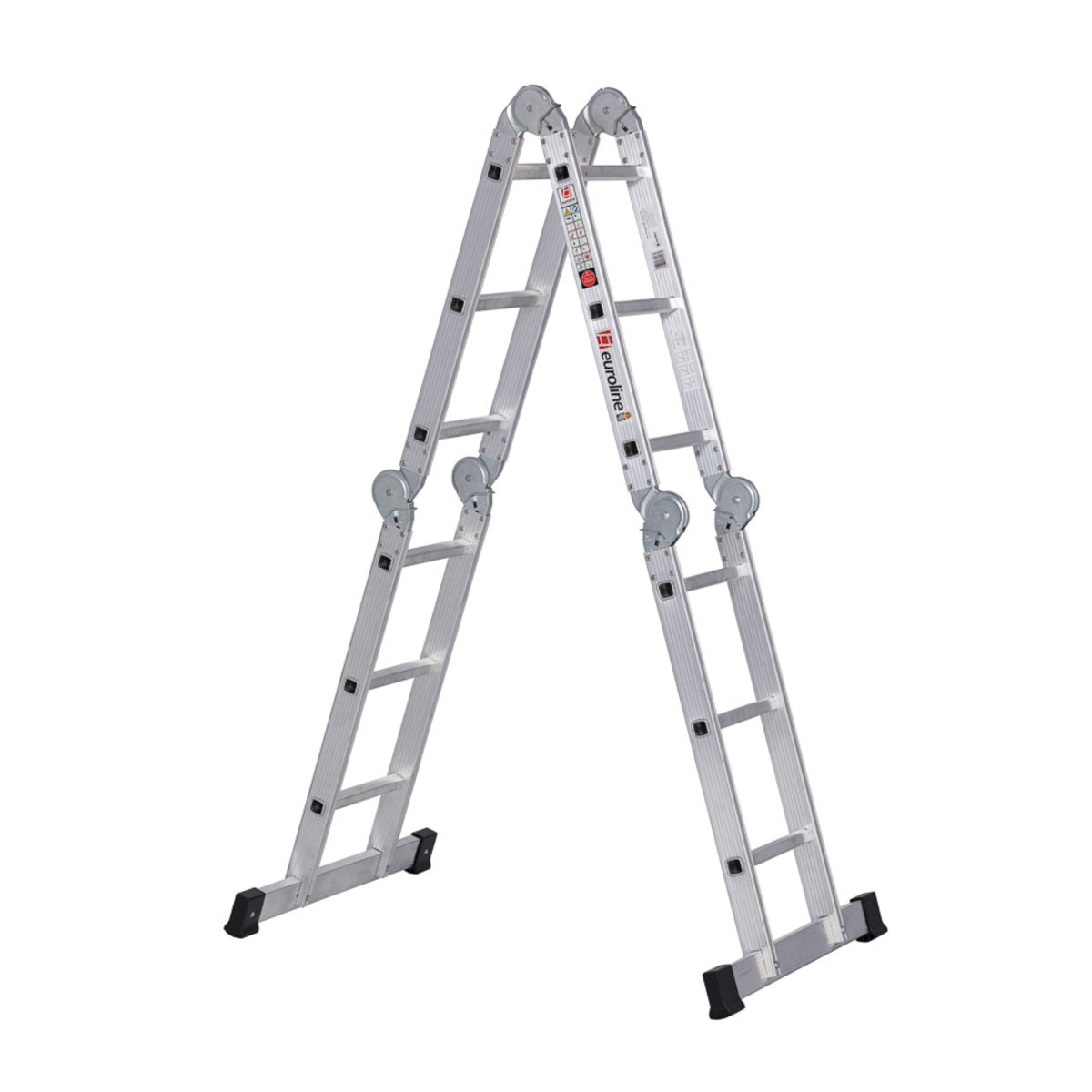 Alu-Klappleiter/Kofferraumleiter mit 4×3 Sprosseneuroline – der sichere AufstiegDiese variierbare Leiter ist ideal geeignet, wenn häufig der Arbeitsort gewechselt werden muss. Sie lässt sich so klein und kompakt zusammenklappen, dass sie problemlos in den Kofferraum eines Pkws passt. Am Arbeitsort lässt sie sich mit wenigen Handgriffen als Stehleiter, Anlegeleiter oder in Verbindung mit einer Bohle als Arbeitsgerüst schnell aufbauen. Das macht sie sehr vielseitig einsetzbar, ob im Garten, am Haus oder auf der Arbeit, so eine praktische Klappleiter kommt immer wieder zum Einsatz. Durch die 30 x 30 mm starken Vierkantsprossen bietet die Sechsgelenkleiter sehr gute Trittsicherheit. Die zwei 85 mm breiten Traversen verhindern ein seitliches Umkippen der Leiter. Vielseitig einsetzbarAufbau möglich als Stehleiter, Anlegeleiter, Arbeitsgerüst (in Verbindung mit einer Bohle)Klein zusammenklap…