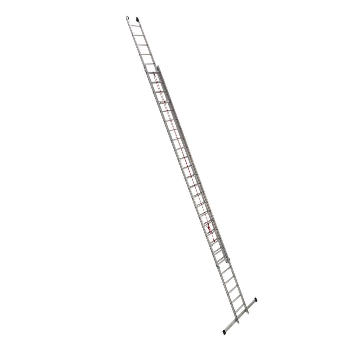 Alu-Seilzugleiter 2-teilig mit 2×26 Sprosseneuroline – der sichere AufstiegDiese Seilzugleiter ist eine der besten Lösungen für jeden, der sehr hoch hinaus will. Besonders Handwerker wie Dachdecker, Elektriker oder Hausmeister arbeiten gerne mit dieser Art von Leitern an hohen Gebäuden oder Baustellen. Obwohl sie sehr lang ist, lässt sie sich mit dem Seil, ganz einfach von einer Person ohne großen Kraftaufwand nach oben ausziehen. Wenn an Wänden gearbeitet werden soll, erleichtern die Wandlaufrollen zusätzlich das Ausziehen der 2-teiligen Anlegeleiter und schonen gleichzeitig die Wand vor Beschädigungen. Fallhaken sorgen für schnelles und einfaches Feststellen an jeder Sprosse. Sprossenabstand 280 mm Breite Quertraverse für sicheren StandVon Sprossen zu Sprosse mit Seil (Ø 12 mm) ausziehbarVollflächig aufliegender FallhakenWaagerechte Auftrittsfläche für sicheren und ermüdungsfreien S…