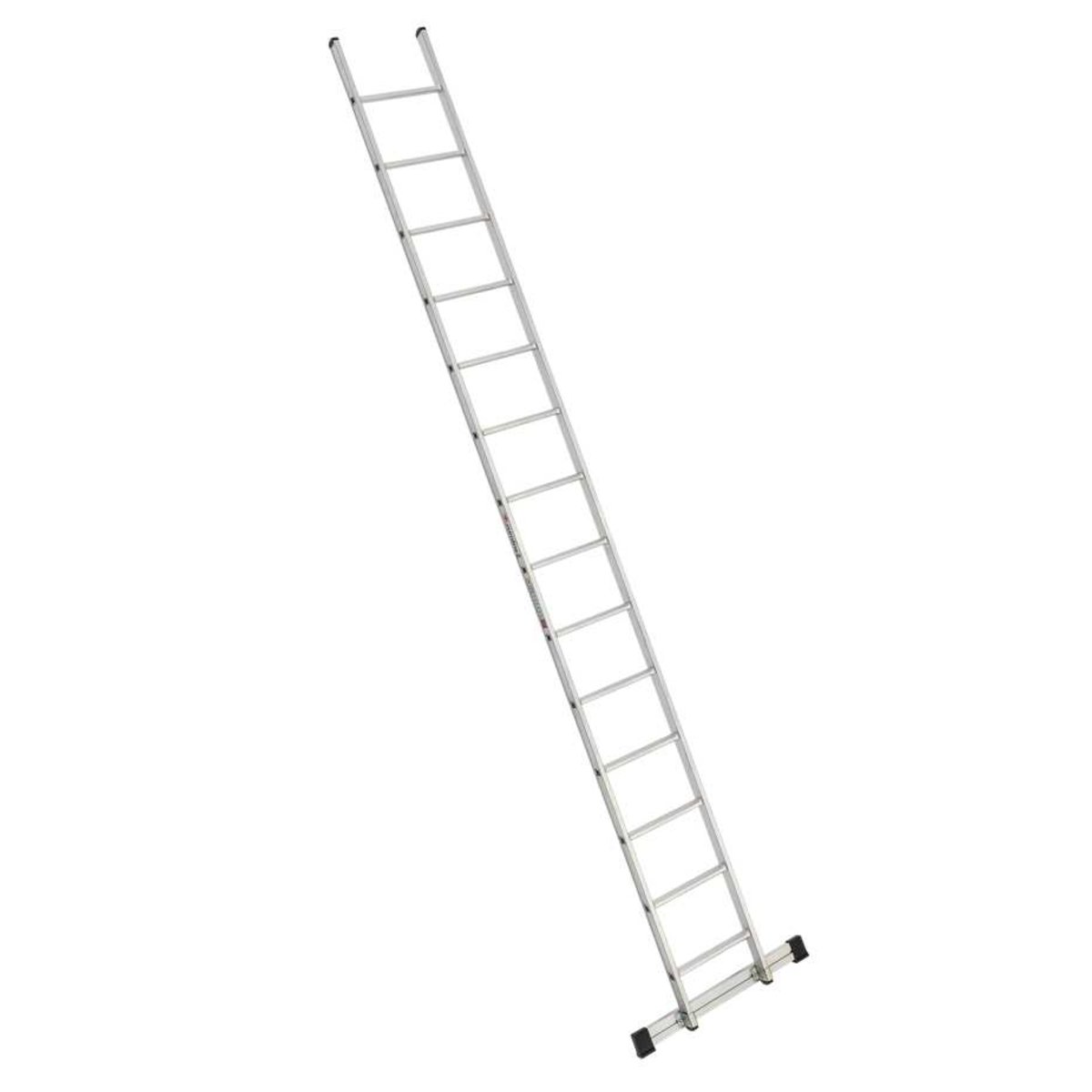 Alu-Sprossenanlegeleiter mit 14 Sprosseneuroline – der sichere Aufstiegeuroline Alu-Sprossenanlegeleitern lassen sich durch ihr geringes Gewicht leicht von einem Einsatzort zum anderen transportieren. Erhältlich in 11 verschiedenen Längen, ist diese Leiter perfekt für den Profieinsatz im Innen- und Außenbereich. Ob für Reparaturen, Handwerksarbeiten oder die Begehung höher gelegener Ebenen – diese Profileiter bildet für nahezu jeden Einsatz die ideale Steighilfe. Ab Größe 12 verfügt die Leiter über eine breite Quertraverse für noch festeren, sichereren Stand bei der Arbeit in großen Höhen. Sicherer, ermüdungsfreier Stand durch 32mm tiefe Trapezsprossen mit waagerechter, profilierter Auftrittsfläche Sprossenabstand 280 mm Ab Größe 12 mit breiter Quertraverse Holme aus stranggepressten Aluminiumprofilen mit Sicke für sehr hohe Stabilität Stranggepresste Sprossenprofile m…