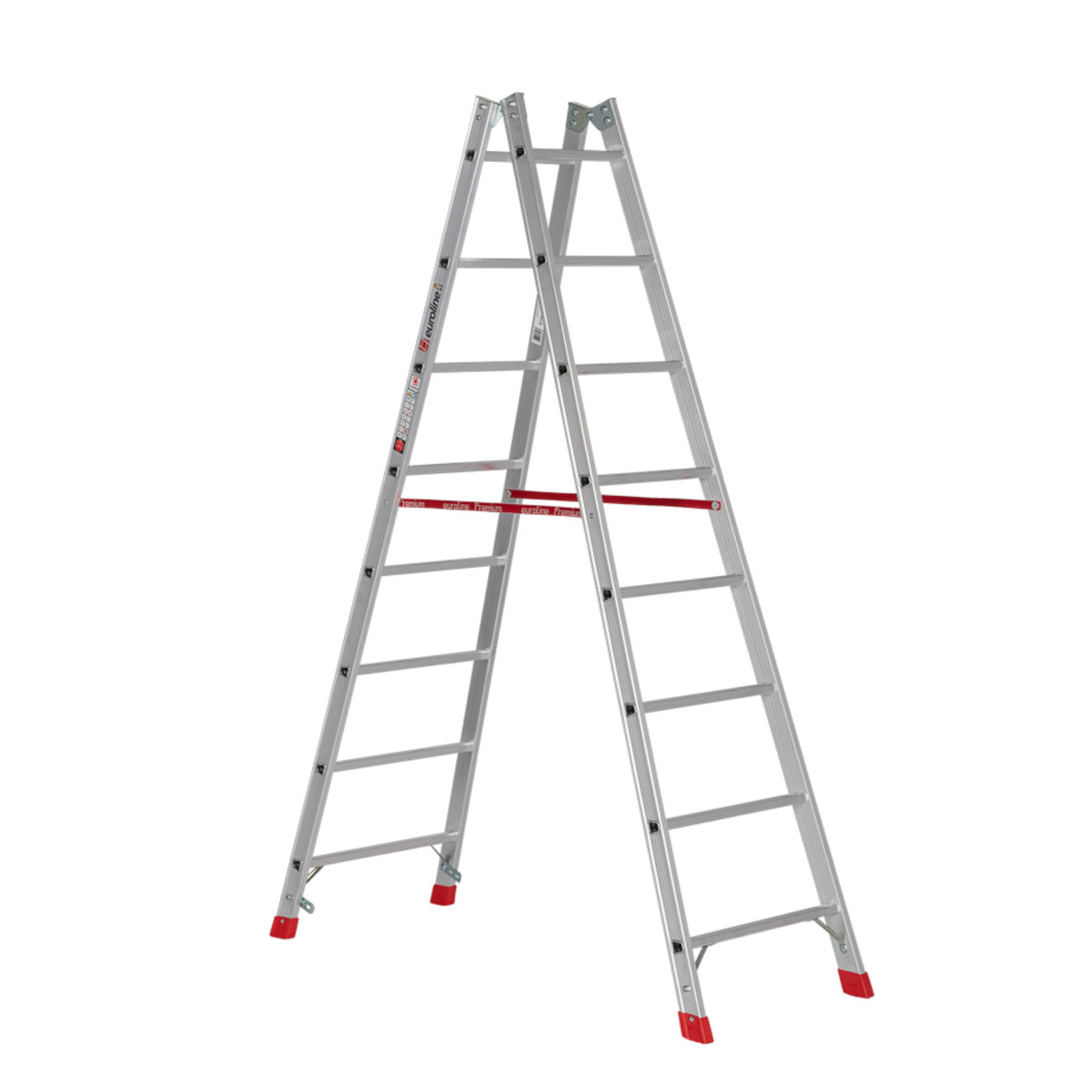 Alu – Sprossenstehleiter mit 2×8 Sprosseneuroline – der sichere AufstiegAlu – Sprossenstehleitern aus der PREMIUMline sind die Lösung fürhohe Ansprüche und Belastungen überall dort wo keine Leiter angelegtwerden kann. Besonders bei Arbeiten über dem Kopf wird eine stabile undsichere Stehleiter benötigt. Für hohe Standfestigkeit sorgt der nachunten hin konische Verlauf der Leiter, besonders reißfesteSicherheitsspanngurte stabilisieren die Leiter zusätzlich. Die Alu -Sprossenstehleitern sind beidseitig begehbar und sie können ohne Hilfevon einer einzelnen Person aufgestellt werden. In der Lager- undBetriebseinrichtung sowie für handwerkliche Tätigkeiten ist sie derperfekte Begleiter für Industrie und Handwerk.Sprossen mit 32mm waagerechter Auftrittsfläche für sicheren und ermüdungsfreien Stand, Sprossenabstand 280mmStranggepresste Sprossen-Profile mit starker Profilierung für verbessert…