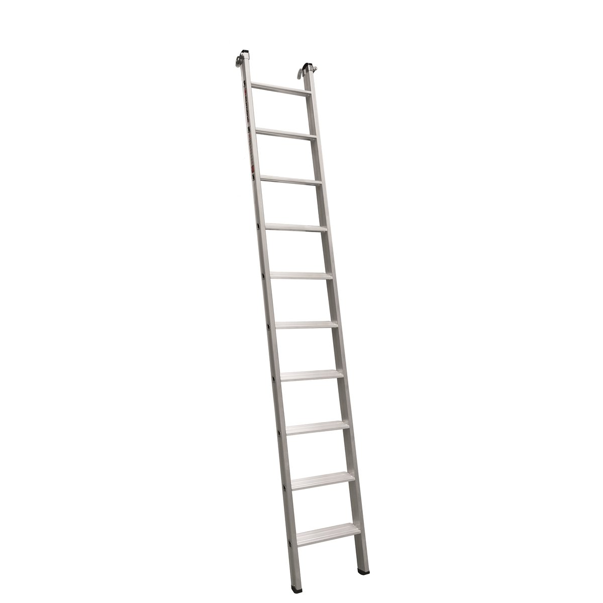 Alu-Stufenanlegeleiter mit Vario Einhängehaken und 10 Stufeneuroline – der sichere AufstiegGeeignet als Verkehrsweg und Arbeitsplatz gemäß TRBS 2121-2Diese Anlegeleiter ist mit einer Besonderheit ausgestattet – sie hat 2 Vario Einhängehaken.Diese können schnell, einfach und variabel am Leiterholm montiert werden. Sie bieten den Vorteil, dass die Leiter im unbenutzten Zustand platzsparend aufgehängt werden kann (Parkposition). Werden die Haken am oberen Holmende montiert, kann die Leiter auch bei Benutzung eingehängt werden. Dadurch wird seitliches Verrutschen ausgeschlossen und die Sicherheit erhöht. Inklusive 2 Vario – Einhängehaken ⌀ 60 mm:Am oberen Holmende zum Einhängen bei der Leiterbenutzung und tiefer angebracht zum platzsparenden Einhängen der Leiter im unbenutzten Zustand (Parkposition)Entspricht der neuen TRBS 2121-2 (Technische Regeln für Betriebssicherheit) Stranggepr…
