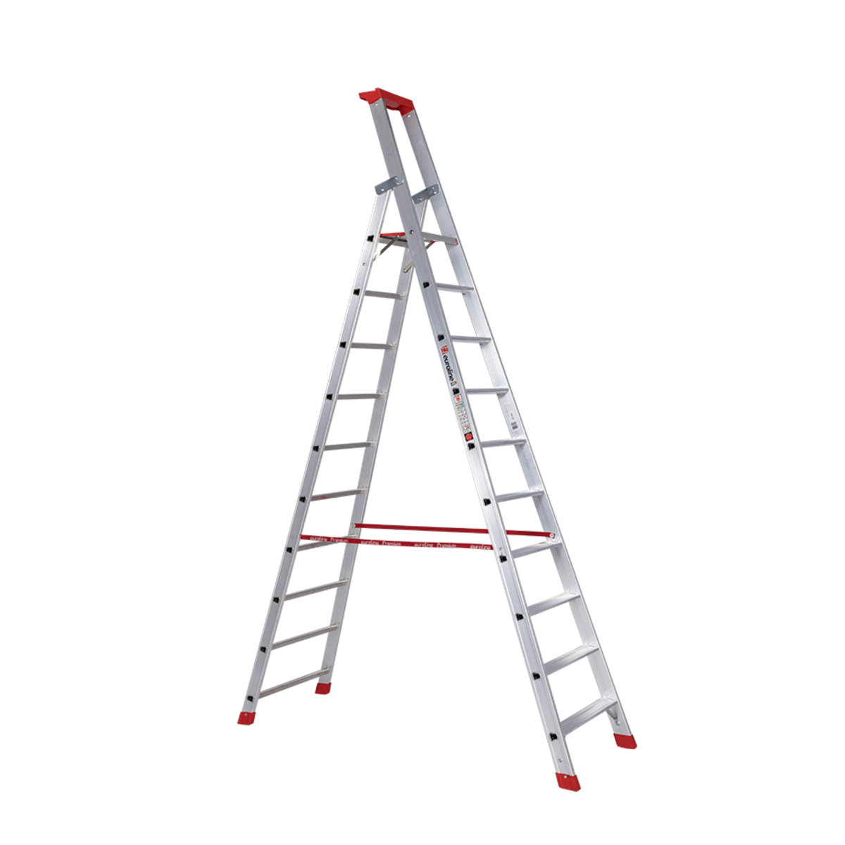 Alu-Stufenstehleiter mit Sicherheitsbrücke und 10 StufenGeeignet als Verkehrsweg und Arbeitsplatz gemäß TRBS 2121-2 euroline – der sichere AufstiegDiese einseitig begehbare Stufenleiter hat ein großes, rutschfestesStandpodest für sicheres Arbeiten mit festem Stand. Der Sicherheitsbügelmit integrierter Werkzeugablage bietet viel Platz für Werkzeuge undKleinteile. Durch die Gummifüße mit Abstandsnocke ist für noch sicherenStand gesorgt und Holmbeschädigungen beim Zusammenklappen der Leiterwerden verhindert. Erhältlich in 7 verschiedenen Größen, bildet dieseLeiter die ideale Steighilfe für das Arbeiten in verschiedenenHöhen.Perfekt geeignet für den Profieinsatz im Innen- und Außenbereich.Ob beim Einsortieren von Waren im Lager, Reparaturen oderHandwerksarbeiten.Stufen mit 80mm waagerechter Auftrittsfläche für sicheren und ermüdungsfreien StandStufenabstand 250 mmRutschfestes StandpodestH…