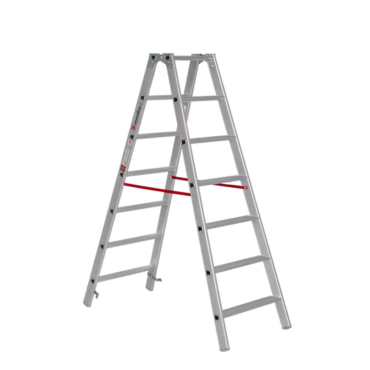Alu-Stufenstehleiter mit 2×7 StufenGeeignet als Verkehrsweg und Arbeitsplatz gemäß TRBS 2121-2 euroline – der sichere Aufstieg Auf dieser euroline Alu-Stufenstehleiter haben Sie bei verschiedensten Tätigkeiten im Innen- und Außenbereich immer einen sicheren Stand. Neuste Anforderung an die Sicherheit sind mit dieser Leiter vollumfänglich erfüllt. Aber auch im Haushalt kann diese Leiter perfekt zum Reinigen, Reparieren oder Dekorieren eingesetzt werden. Entspricht der neuen TRBS 2121-2 (Technische Regeln für Betriebssicherheit)Stufen mit 80mm waagerechter Auftrittsfläche, Stufenabstand 250mmRechteck-Holmprofil mit hoher StabilitätProfilierte GummifüßeTransportlasche dient als Anschlag und schützt vor seitlichem VerschiebenDiese Leitern sind eine bewährte Basis-Lösung für alle Handwerksarbeiten. Gerade bei Arbeiten, wo oft der Standort gewechselt werden muss, sind Aluleitern besser…