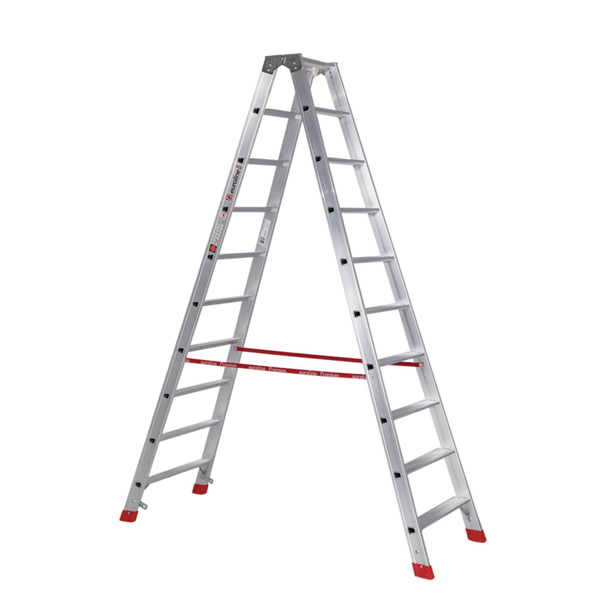 Alu-Stufenstehleiter beidseitig begehbar, mit 2×10 StufenGeeignet als Verkehrsweg und Arbeitsplatz gemäß TRBS 2121-2 euroline – der sichere AufstiegDiese von beiden Seiten begehbare Alu-Stufenstehleiter eignet sich für den Profi-Einsatz in nahezu jedem Innen- und Außenbereich. Erhältlich in 11 verschiedenen Größen, bildet diese Leiter die ideale Steighilfe für das Arbeiten in den verschiedenen Höhen. Ob bei Handwerks- oder Reinigungsarbeiten, Reparaturen oder Ihren individuellen Anforderungen: die stranggepressten Aluminiumprofile sorgen für eine sehr hohe Stabilität bei gleichzeitig geringem Gewicht. Hierdurch ist die Leiter auch in den größeren Größen noch leicht zu transportieren oder umzusetzen.Stufen mit 80 mm waagerechter Auftrittsfläche für sicheren und ermüdungsfreien StandStufenabstand 250 mmStranggepresste Stufenprofile mit starker Profilierung für verbesserte RutschhemmungH…