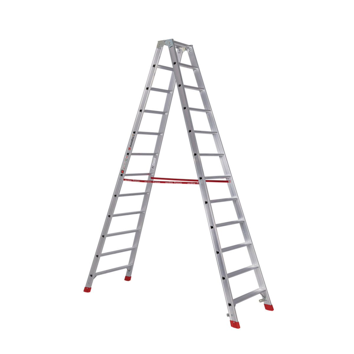 Alu-Stufenstehleiter beidseitig begehbar, mit 2×12 StufenGeeignet als Verkehrsweg und Arbeitsplatz gemäß TRBS 2121-2 euroline – der sichere AufstiegDiese von beiden Seiten begehbare Alu-Stufenstehleiter eignet sich für den Profi-Einsatz in nahezu jedem Innen- und Außenbereich. Erhältlich in 11 verschiedenen Größen, bildet diese Leiter die ideale Steighilfe für das Arbeiten in den verschiedenen Höhen. Ob bei Handwerks- oder Reinigungsarbeiten, Reparaturen oder Ihren individuellen Anforderungen: die stranggepressten Aluminiumprofile sorgen für eine sehr hohe Stabilität bei gleichzeitig geringem Gewicht. Hierdurch ist die Leiter auch in den größeren Größen noch leicht zu transportieren oder umzusetzen.Stufen mit 80 mm waagerechter Auftrittsfläche für sicheren und ermüdungsfreien StandStufenabstand 250 mmStranggepresste Stufenprofile mit starker Profilierung für verbesserte RutschhemmungH…