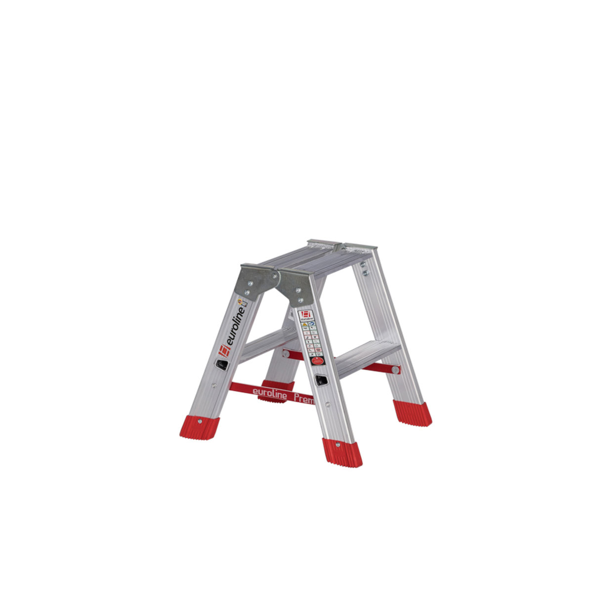 Alu-Stufenstehleiter beidseitig begehbar, mit 2×2 StufenGeeignet als Verkehrsweg und Arbeitsplatz gemäß TRBS 2121-2 euroline – der sichere AufstiegDiese von beiden Seiten begehbare Alu-Stufenstehleiter eignet sich für den Profi-Einsatz in nahezu jedem Innen- und Außenbereich. Erhältlich in 11 verschiedenen Größen, bildet diese Leiter die ideale Steighilfe für das Arbeiten in den verschiedenen Höhen. Ob bei Handwerks- oder Reinigungsarbeiten, Reparaturen oder Ihren individuellen Anforderungen: die stranggepressten Aluminiumprofile sorgen für eine sehr hohe Stabilität bei gleichzeitig geringem Gewicht. Hierdurch ist die Leiter auch in den größeren Größen noch leicht zu transportieren oder umzusetzen.Stufen mit 80 mm waagerechter Auftrittsfläche für sicheren und ermüdungsfreien StandStufenabstand 250 mmStranggepresste Stufenprofile mit starker Profilierung für verbesserte RutschhemmungHo…