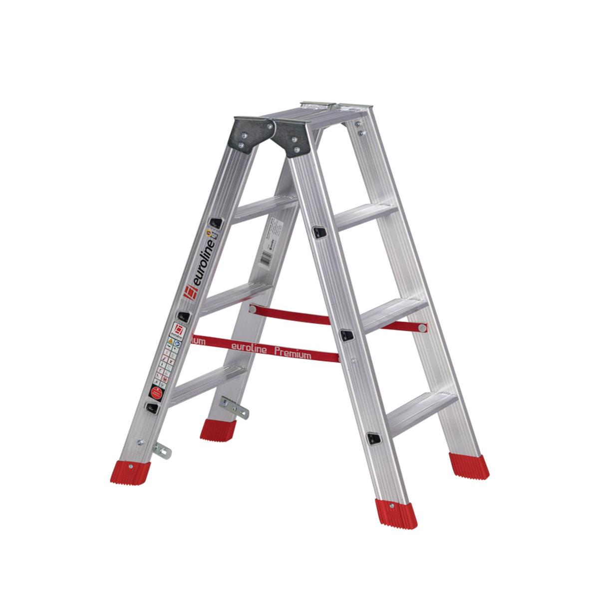Alu-Stufenstehleiter beidseitig begehbar, mit 2×4 StufenGeeignet als Verkehrsweg und Arbeitsplatz gemäß TRBS 2121-2 euroline – der sichere AufstiegDiese von beiden Seiten begehbare Alu-Stufenstehleiter eignet sich für den Profi-Einsatz in nahezu jedem Innen- und Außenbereich. Erhältlich in 11 verschiedenen Größen, bildet diese Leiter die ideale Steighilfe für das Arbeiten in den verschiedenen Höhen. Ob bei Handwerks- oder Reinigungsarbeiten, Reparaturen oder Ihren individuellen Anforderungen: die stranggepressten Aluminiumprofile sorgen für eine sehr hohe Stabilität bei gleichzeitig geringem Gewicht. Hierdurch ist die Leiter auch in den größeren Größen noch leicht zu transportieren oder umzusetzen.Stufen mit 80 mm waagerechter Auftrittsfläche für sicheren und ermüdungsfreien StandStufenabstand 250 mmStranggepresste Stufenprofile mit starker Profilierung für verbesserte RutschhemmungHo…