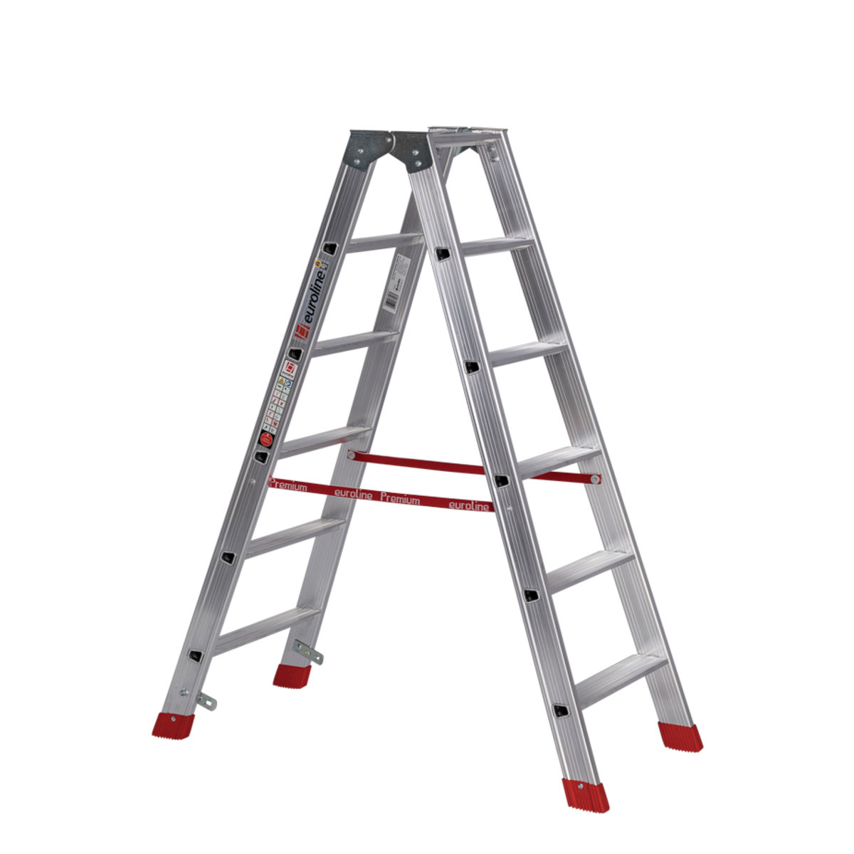 Alu-Stufenstehleiter beidseitig begehbar, mit 2×6 StufenGeeignet als Verkehrsweg und Arbeitsplatz gemäß TRBS 2121-2 euroline – der sichere AufstiegDiese von beiden Seiten begehbare Alu-Stufenstehleiter eignet sich für den Profi-Einsatz in nahezu jedem Innen- und Außenbereich. Erhältlich in 11 verschiedenen Größen, bildet diese Leiter die ideale Steighilfe für das Arbeiten in den verschiedenen Höhen. Ob bei Handwerks- oder Reinigungsarbeiten, Reparaturen oder Ihren individuellen Anforderungen: die stranggepressten Aluminiumprofile sorgen für eine sehr hohe Stabilität bei gleichzeitig geringem Gewicht. Hierdurch ist die Leiter auch in den größeren Größen noch leicht zu transportieren oder umzusetzen.Stufen mit 80 mm waagerechter Auftrittsfläche für sicheren und ermüdungsfreien StandStufenabstand 250 mmStranggepresste Stufenprofile mit starker Profilierung für verbesserte RutschhemmungHo…