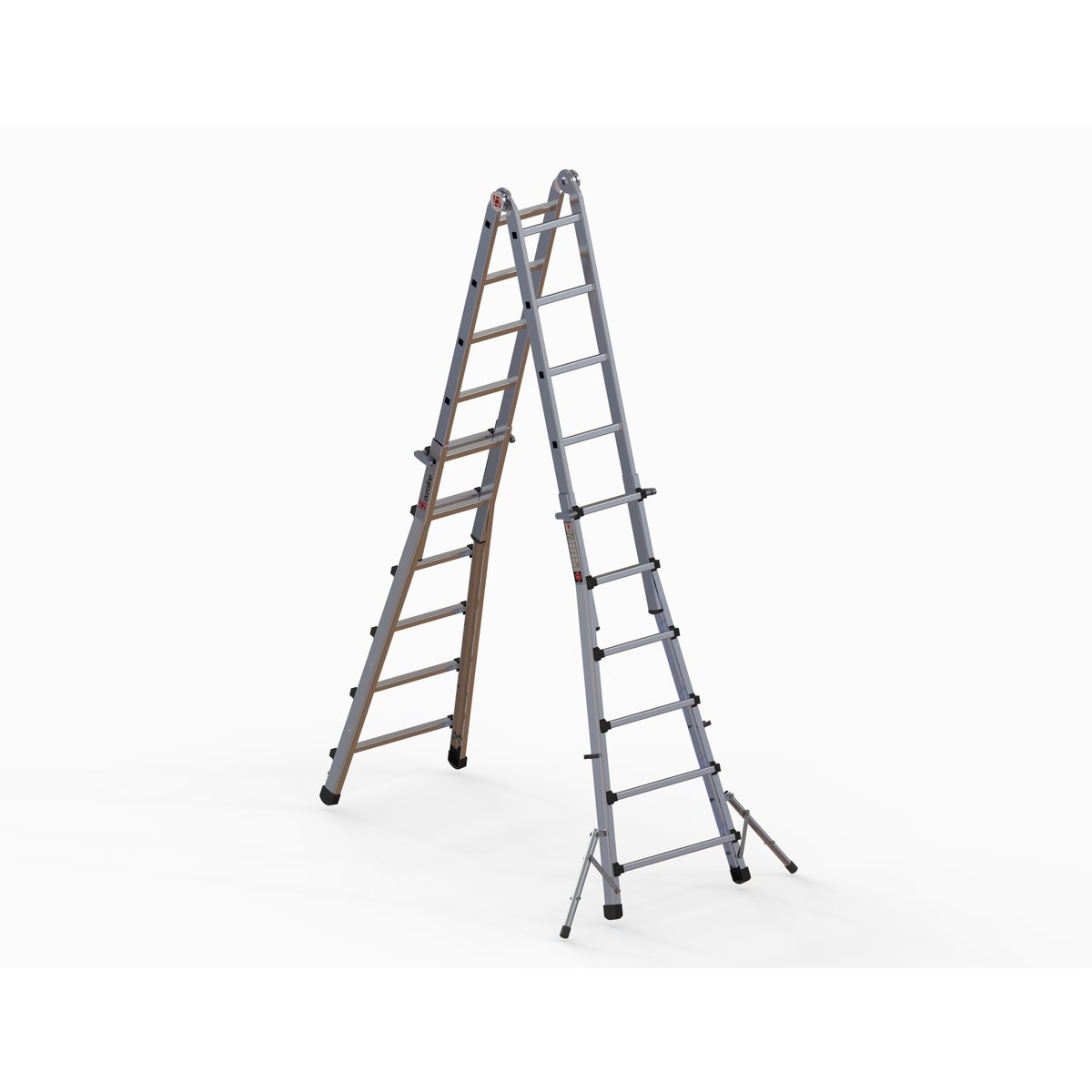 Alu-Vario-Klappleiter mit Standverbreiterung Nr. 31631 mit 4×6 Sprosseneuroline – der sichere AufstiegVielseitig, sicher, kompakt – die euroline Alu-Vario-Klappleiter ist ein AllrounderOb als lange Anlegeleiter für Arbeiten an Fassaden oder als kompakte Stehleiter/Bockleiter für Innenräume – sie passt sich flexibel jedem Einsatzzweck an. Da beide Seiten der Leiter unabhängig voneinander in der Höhe verstellbar sind, kann die Leiter auch auf Treppen und Absätzen verwendet werden. Die Leiter besteht aus einer Stehleiter verbunden mit zwei Sicherheitsgelenken und zwei Außenteilen welche mittels Stellgriffen in der Länge verstellbar sind. Durch stufenweises Ausziehen bzw. Ausklappen wird die Steighilfe aus stranggepresstem Aluminium sekundenschnell umfunktioniert. Für den Transport oder die Lagerung wird sie auf kompakte Größe zusammengeklappt. Diese Teleskopleiter ist im Gegensatz zu Typ…