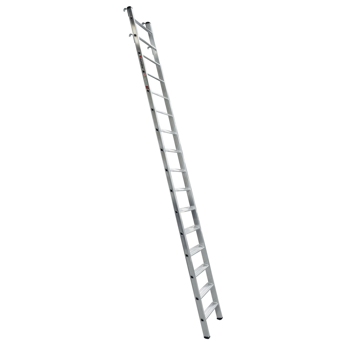 Alu – Regalleiter einhängbar mit 16 Stufeneuroline – der sichere AufstiegAlu – Regalleitern für Industrie, Handel und Bibliotheken. Einfach über die montierten Haken in das bauseitige Rundrohr einhängen, bei Bedarf schnell abnehmbar um einen freien Durchgang zu schaffen. Zum platzsparenden Einhängen sind zwei weitere Einhängehaken an der Leiter montiert um die Leiter schnell und einfach in Parkpposition zu bringen. Wichtig bei der Bestimmung der richtigen Größe ist das Maß der senkrechten Einhängehöhe, messen Sie hier bitte das Maß vom Boden bis zur Unterkante der Schienenanlage.80 mm tiefe, geriffelte Stufen mit dauerhafter Stufen-HolmverbindungOberes Ende mit jeweils 2 Auflege- und Abstellhaken D= 60mm Im euroline PREMIUM-Line Programm finden Sie ausschließlich Steigtechnik-Profi-Lösungen für die höchsten Ansprüche und starke Belastungen. Die Holme aus starken Aluminiumprofilen…