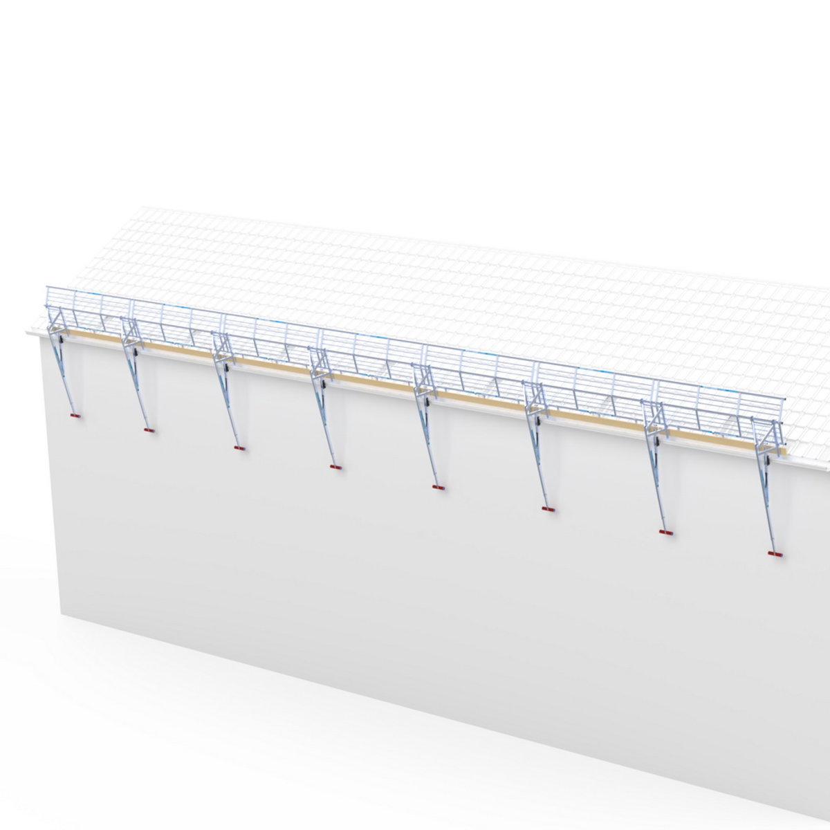 Innovatives und praxisorientiertes Absturzsicherungssystem für Arbeiten auf SchrägdächernDach – Absturzsicherung für Schrägdächer Set für Gesamtlänge: 21 meuroline – der sichere AufstiegDie ideale Lösung für Dacharbeiten, wie etwa die Montage von Photovoltaik- und Solarthermieanlagen. Kompatibel für die Dachklassen A, B und C dadurch universell und vielseitig einsetzbarBesonders einfache Montage durch wenige leichte Einzelteile die schnell und einfach installiert werden könnenDurch den Kauf von Einzelteilen jederzeit erweiterbarDieses System ist eine moderne, sichere und effiziente Lösung zur Absturzsicherung und leistet einen wesentlichen Beitrag zur Unfallprävention auf Baustellen. Lieferumfang:8 Ständer7 Geländer7 Bordbrett7 Klemmbügel