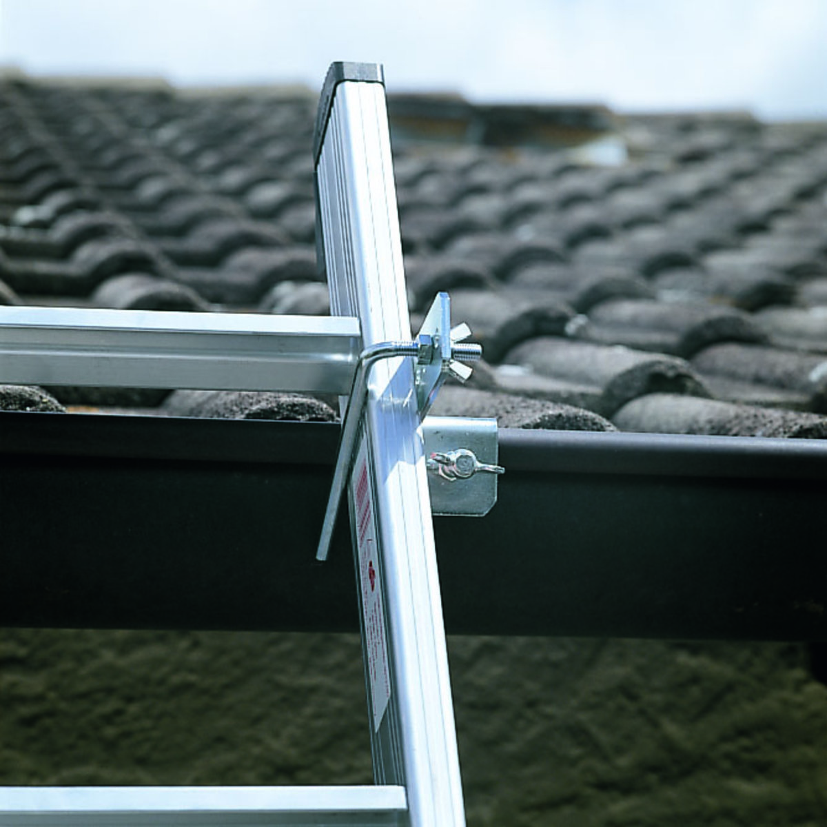 Dachrinnenhaltereuroline – der sichere AufstiegDieser Dachrinnenhalter eignet sich für alle Anlegeleitern, Schiebeleitern oder Mehrzweckleitern aus Aluminium, welche an einem Gebäude mit Dachrinne angelehnt werden. Sie sichert die Leiter gegen seitliches verrutschen oder umkippen. Die Halterung kann in einfacher Selbstmontage am Leiterholm und der Dachrinne befestigt werde. Durch die Schrauben kann sie an die jeweilige breite des Leiterholms angepasst werden.Passend für alle euroline Alu-Anlegeleitern, Alu-Schiebeleitern, Alu-Mehrzweckleitern Schnell und einfach angebautKein Werkzeug erforderlichLiefermenge: ein DachrinnenhalterMit dem vielfältigen Zubehör für euroline Aluleitern entscheiden Sie sich für vielseitig einsetzbare und genau zu Ihren Anforderungen passende Helfer, die Ihre Leiter speziell für Ihren Einsatzbereich abrunden. So erhöhen Sie sowohl Ihren Arbeitskomfort als auc…