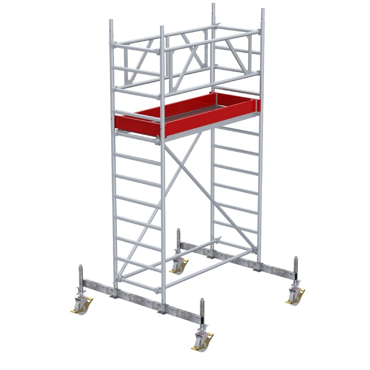 Gerüsttyp 9511 mit Fahrbalken verschiebbar Plattform 0,75 x 1,80 meuroline – der sichere AufstiegDie euroline Fahrgerüste zeichnen sich durch ihre hohe Qualität und Anwenderfreundlichkeit aus:Plattform 0,75 x 1,80 mFahrbalken verschiebbar, das aufgebaute Gerüst einfach und stufenlos auf dem Fahrbalken verschieben – ohne AbbauRollen mit Spezialbeschichtung für empfindliche BödenDurch das Baukastensystem sind euroline Fahrgerüste flexibel einsetzbar und individuell für jeden Einsatz konfigurierbar, die Fahrgerüste sind jederzeit erweiter- und umbaubarDas System bietet hohe Flexibilität bei der Arbeitshöhe: Die Plattformen sind in jeder Sprossenhöhe einhängbar, sogar wenn Diagonalen an derselben Sprosse eingehakt sindEinfacher und leichter Aufbau ohne Werkzeugeuroline bietet eine Variantenvielzahlvon sicheren und flexiblen Fahrgerüsten für verschiedeneAnwendungsfälle und Zielgruppen…
