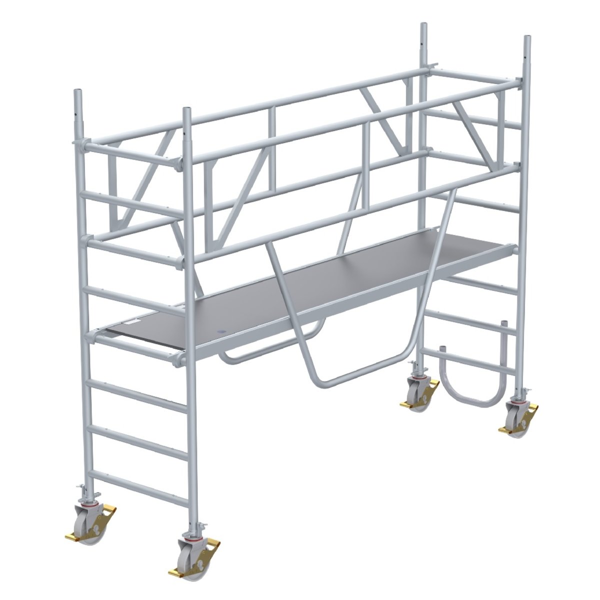 Gerüsttyp 9513 mit SicherheitsaufbauPlattform 0,75 x 2,85 meuroline – der sichere AufstiegDie euroline Fahrgerüste zeichnen sich durch ihre hohe Qualität und Anwenderfreundlichkeit aus:Sicherheitsaufbau: Gewährleistet den Aufbau mit vorlaufendem Sicherheitsgeländer und Plattformen im 2 m AbstandPlattform 0,75 x 2,85 mRollen mit Spezialbeschichtung für empfindliche BödenDurch das Baukastensystem sind euroline Fahrgerüste flexibel einsetzbar und individuell für jeden Einsatz konfigurierbar, die Fahrgerüste sind jederzeit erweiter- und umbaubarDas System bietet hohe Flexibilität bei der Arbeitshöhe: Die Plattformen sind in jeder Sprossenhöhe einhängbar, sogar wenn Diagonalen an derselben Sprosse eingehakt sindEinfacher und leichter Aufbau ohne Werkzeugeuroline bietet eine Variantenvielzahl von sicheren und flexiblen Fahrgerüsten für verschiedene Anwendungsfälle und Zielgruppen, welche fü…