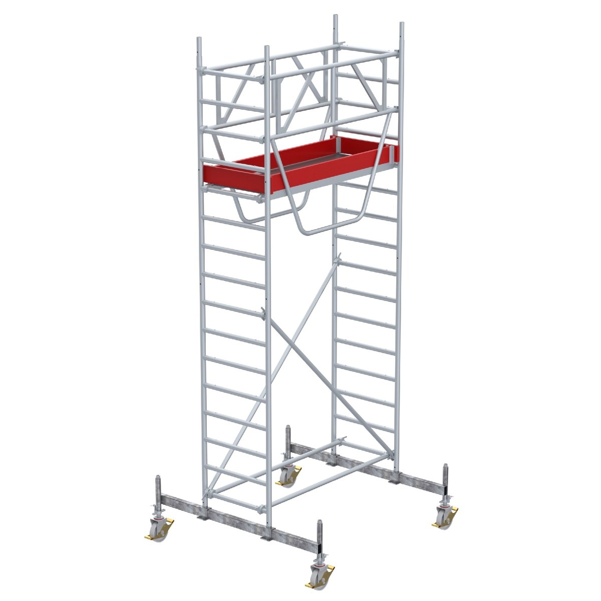 Euroline Gerüsttyp 9521 mit Fahrbalken verschiebbar und Sicherheitsgeländern (Typ 0,75 x 1,80 m) mit Arbeitshöhe bis 5,30 m