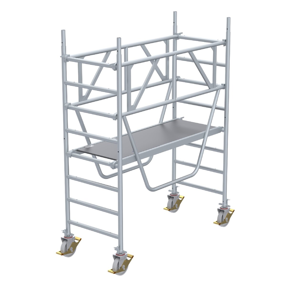 Gerüsttyp 9521 Plattform 0,75 x 1,80 m mit vorlaufenden Sicherheitsgeländerneuroline – der sichere AufstiegDie euroline Fahrgerüste zeichnen sich durch ihre hohe Qualität und Anwenderfreundlichkeit aus:Gerüst ähnlich Typ 9511 jedoch mit Sicherheitsgeländern um den Aufbau mit vorlaufenden Geländern zu gewährleistenPlattform 0,75 x 1,80 mRollen mit Spezialbeschichtung für empfindliche BödenDurch das Baukastensystem sind eurolineFahrgerüste flexibel einsetzbar und individuell für jeden Einsatzkonfigurierbar, die Fahrgerüste sind jederzeit erweiter- und umbaubarDasSystem bietet hohe Flexibilität bei der Arbeitshöhe: Die Plattformensind in jeder Sprossenhöhe einhängbar, sogar wenn Diagonalen anderselben Sprosse eingehakt sindEinfacher und leichter Aufbau ohne Werkzeugeuroline bietet eine Variantenvielzahlvon sicheren und flexiblen Fahrgerüsten für verschiedeneAnwendungsfälle und Zielg…