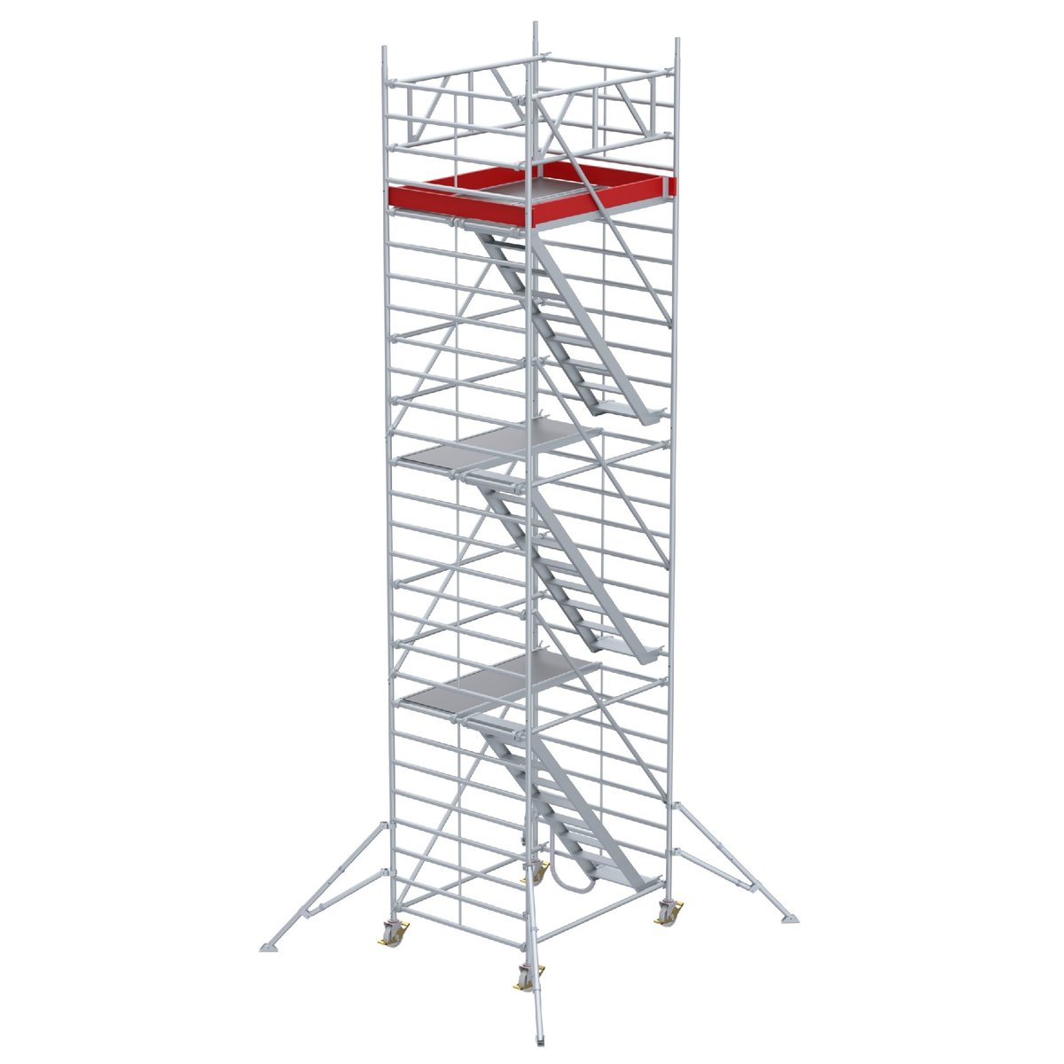 Gerüsttyp 9523 mit Auslegern und TreppenaufgangPlattform 1,50 x 1,80 meuroline – der sichere AufstiegDie euroline Fahrgerüste zeichnen sich durch ihre hohe Qualität und Anwenderfreundlichkeit aus:Sicherer und ergonomischer Innenaufstieg über Treppen auch mit Werkzeug oder BaumaterialPlattform 1,50 x 1,80 mStufenlos einstellbare Ausleger – durch Wegschwenken von zwei Auslegern können die Gerüste dicht an Wände herangefahren werdenRollen mit Spezialbeschichtung für empfindliche BödenDurch das Baukastensystem sind eurolineFahrgerüste flexibel einsetzbar und individuell für jeden Einsatzkonfigurierbar, die Fahrgerüste sind jederzeit erweiter- und umbaubarDasSystem bietet hohe Flexibilität bei der Arbeitshöhe: Die Plattformensind in jeder Sprossenhöhe einhängbar, sogar wenn Diagonalen anderselben Sprosse eingehakt sindEinfacher und leichter Aufbau ohne Werkzeugeuroline bietet eine Var…