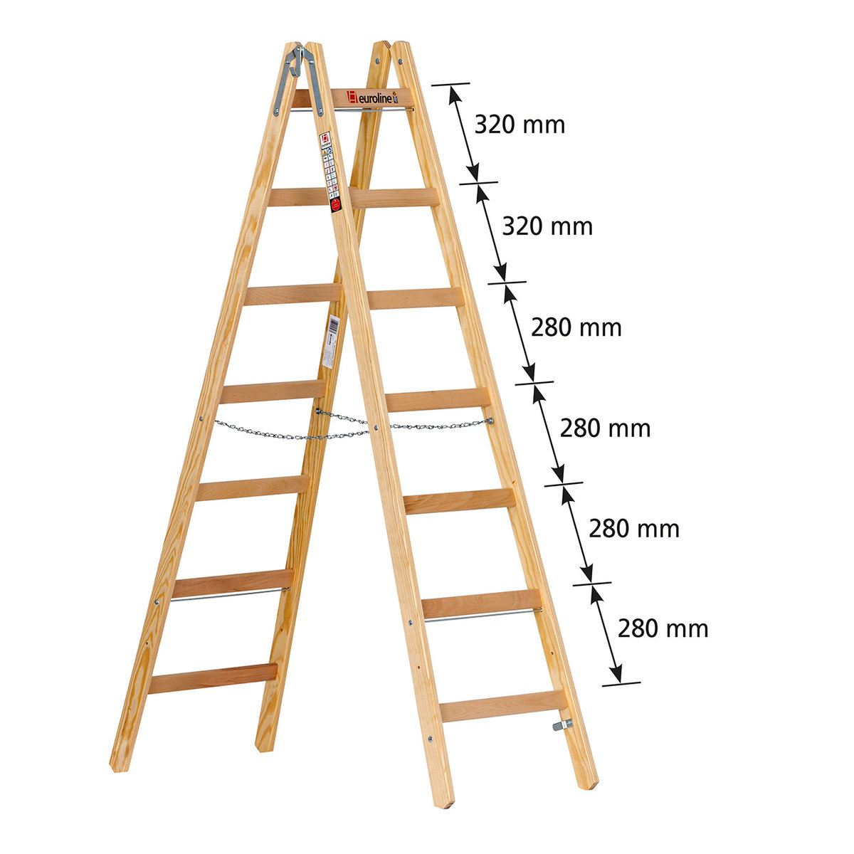 Holz-Sprossenstehleiter mit unterschiedlichem Sprossenabstand und Eimerhaken 2×7 Sprosseneuroline – der sichere AufstiegHolz-Sprossenstehleitern können flexibel eingesetzt werden für Reparatur, Reinigung und Handwerksarbeiten aller Art. Besonders bei Malern ist diese Holz-Leiter mit Sprossen, welche einen unterschiedlichen Abstand haben sehr beliebt. Die oberen beiden Sprossenabstände sind auf 320 mm vergrößert um ein komfortables Stehen zu gestatten. Außerdem wird eine fortlaufende Nutzung in aufrechter Position ohne ständiges Auf- und Absteigen ermöglicht.Durch die Robustheit der Leiter ist sie nahezu für alle Tätigkeiten im Innen- und Außenbereich geeignet. Für Sie besonders angenehm: Der nachwachsende Werkstoff Holz ist wärmer als Aluminium und reagiert nicht mit Farben, Wasser oder Kleister – schwarze Verfärbungen auf Händen und Kleidung werden so vermieden.Praktisch ist auch der…