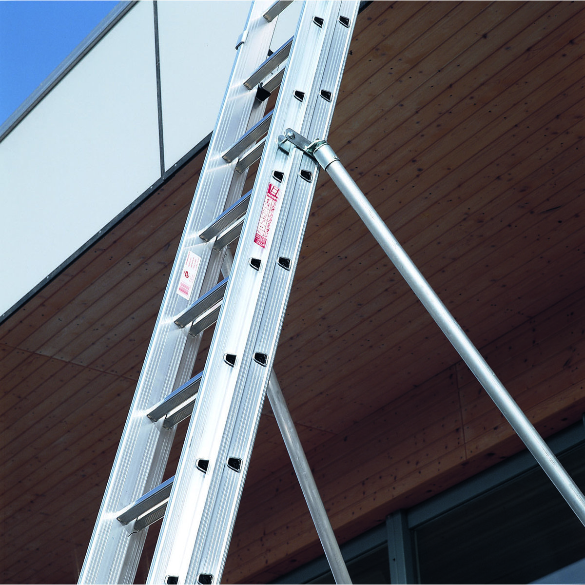 Leiterstützeneuroline – der sichere AufstiegVorallem bei langen Schiebe- und Seilzugleitern kann es beim Hinauf- undHinabsteigen zu leichtem Schwingen der Leiter kommen. Außerdem werdendie Leitern bei Belastung in der Mitte leicht durchgebogen. Um dementgegenzuwirken, können 2 Leiterstützen links und rechts an der Leiterin einfacher Selbstmontage befestigt werden. Diese geben der Leiter mehrStabilität und verleihen ein sichereres Gefühl bei Arbeiten in luftigerHöhe. Passend für euroline Schiebe- und Seilzugleitern Größe (ein Leiterteil)24-26 SprossenLeitern mit Stützen nicht freistehend verwendenReduzieren das Durchbiegen und Schwingen der LeiterEinfache und schnelle MontageWerkzeug zur Montage erforderlichLiefermenge: 2 Leiterstützen Mit dem vielfältigen Zubehör für eurolineLeitern entscheiden Sie sich für vielseitig einsetzbare und genau zuIhren Anforderungen passende Helfer, die Ih…