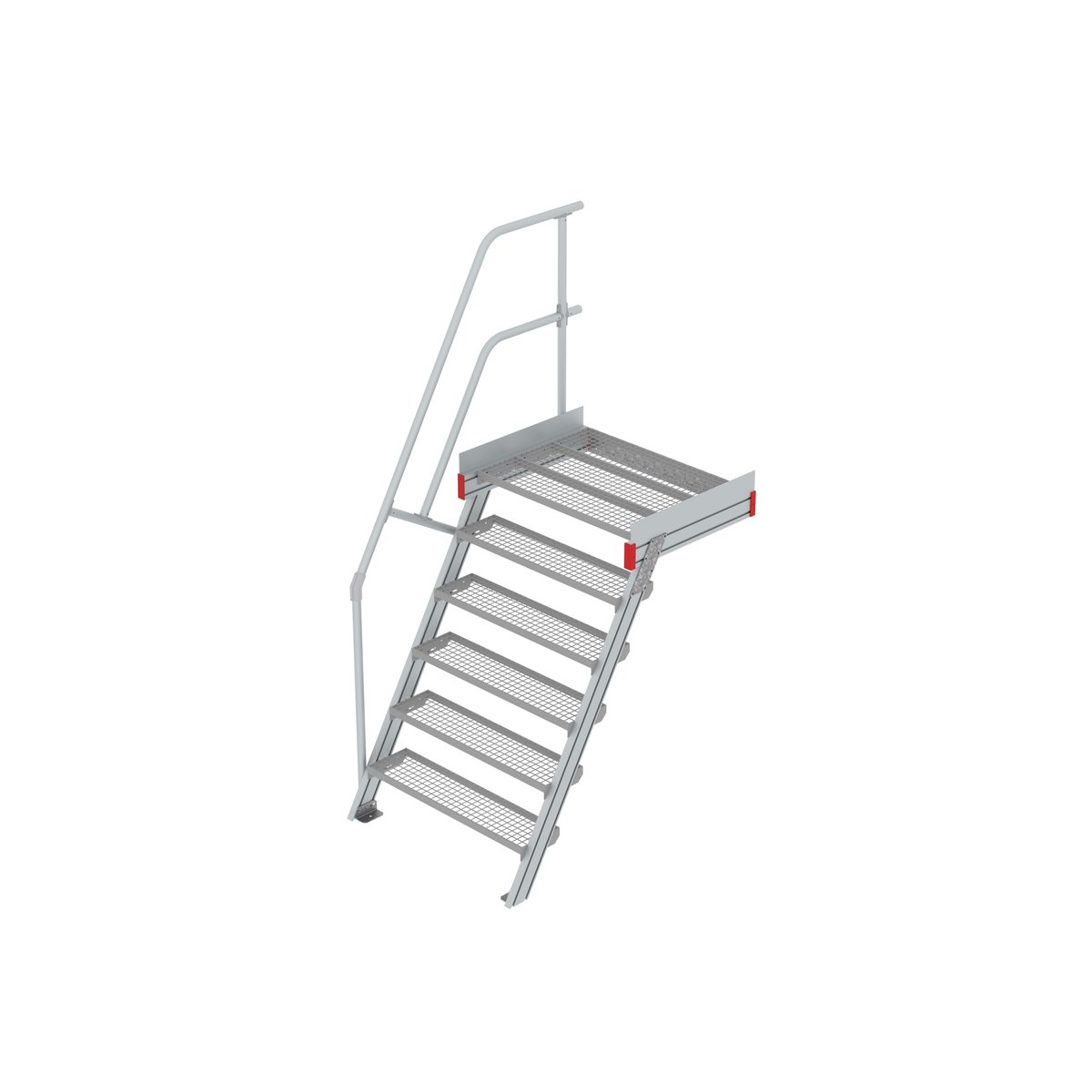 Podesttreppe 60° mit 6 Stufen 1000 mm breiteuroline – der sichere AufstiegStahl Gitterrost – Podesttreppen für individuelle Lösungen: Wetterfest, robust, sehr stabil und belastbar. Für das sichere Erreichen von Zwischenböden, höher gelegenen Türen an Industriehallen oder anderen Gebäuden oder für Wartungsarbeiten an Fertigungslinien. Die hervorragend verarbeitete Steigtechnik Produktserie vereint Sicherheit und Flexibilität. Die verschiedenen Steigungswinkel; 45° für einen bequemen Aufstieg, 60° für beengte Platzverhältnisse, 3 Standard-Stufenbreiten (600 mm, 800 mm, 1000 mm) finden Sie in unseren Empfehlungen verlinkt. Als Standard – Stufenausführungen haben Sie die Wahl zwischen Stufen in Alu-gerieft oder Stahl-Gitterroststufen. Gitterrost bietet den Vorteil, dass Schmutz und Flüssigkeiten, wie Regenwasser einfacher entweichen können. Dadurch ist die Treppe besonders im Außenbereich…
